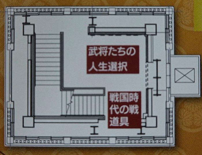 最上階の展望を楽しんだ後は、階段を下りて3階へ。3階の配置図。3階 は「戦国クイズコーナー」になっていた。小牧山にゆかりのある信長、信雄、家康のそれぞれに関する人生を、クイズ形式でたどることができるようであった。「武将たちの人生選択」。戦国時代の戦道具を等身大イラストで紹介し、使用方法などについての知識を深めることができるのであった。火縄銃。槍・馬印。2階に再び立ち寄って。信長がなぜ小牧山を選んだのか、また、小牧・長久手の合戦がどのように展開していったのかを2面スクリーンによる映像で紹介していた。映像 ①信長と小牧山(約5分) ②小牧・長久手の合戦(約8分)と。2階は戦国時代の尾張国についての展示されていた。2階配置図。信長の小牧山城築城や、息子の信雄(のぶかつ)・家康連合軍がなぜ小牧山を本陣としたのか……といった想いや背景などが、パネルや映像(ミニシアター)で紹介されていたのであった。一角には、秀吉軍と信雄・家康連合軍の小牧・長久手の合戦の模様が描かれた屏風図が展示されていた。「小牧長久手合戦図屏風天正12年(1584) 3月に始まった小牧・長久手の合戦は、当初、大規模な戦いは行われず、小牧付近で織田信雄・徳川家康連合軍と羽柴秀吉軍の両軍が対峙し、にらみあいの状態が続いていました。4月6日、秀吉軍が家康の本拠地である岡崎城を攻めるため、極秘に進軍しました。これを察知した家康軍は追撃隊を編成して進車、長久手の地で秀吉軍を攻め、勝利をおさめました。この長久手の合戦のうち、4月9日の合戦の状況を描写したのが小牧長久手合戦図屏風です。小牧長久手合戦図屏風は現在10点ほどが伝わっていて、詳細については異なる部分が多く見られます。展示してある写真パネルの合戦図屏風は徳川美術館所蔵のもので、本来は長篠合戦図屏風とあわせて一双として伝えられているものです。小牧長久手合戦図屏風のうち、最も古いとされる成瀬家本と比べると、画面右下の川(香流川か)の幅が広くて色も薄いこと、中央部の雨池が草の生え方で湿地帯のように表現されていること、中央やや左の家康軍鉄砲隊の発砲を、黒煙で表現してあることなどの特徴があります。」中央部分をズームして。「金地に日の丸の幟」は徳川家康の馬印。小牧山で秀吉軍と対峙していると思われていた家康が長久手に突如現れたことで、秀吉軍は戦意をくじかれ、長久手の戦で敗北へとつながりました。」「秀吉軍の池田勝入の闘死の様子。右に立つ長田伝八郎は池田勝入の首を取り、右手に勝入の◯けていた黒母衣に包んだ首を抱え、左手には勝入の刀を持っています。首を取られた勝入が背負っているのは母衣の骨組みです。」ネットから。長田伝八郎は長久手合戦図屏風で池田勝入の首を討ったとして描かれている武将。永井直勝の右手の黒母衣に首が包まれているのが分かります。また、左手で恒興の名刀を掴んでいます。首級を奪われてしまった池田恒興(池田勝入信輝)。「小牧長久手合戦図屏風」より。(ネットから)。火縄銃。「豊臣秀吉の朱印状 永禄4年(1561)尾張国春日井 郡小松寺門前弐百三拾六石之事如前々令寄附訖全可寺納者也文禄四年八月三日印小松寺」。「森長可禁制札 天正12年(1584)禁制 小松寺一 当手軍勢乱妨狼藉之事一 放火之事一 山林竹木伐取之事 右條々堅令停止訖若 違背者於在之者速可 罪科者也仍如件天正拾弐三月廿七日 長可 花押」「池田恒興軍陣制札 天正12年(1584)條々 小松寺一 当手軍勢乱妨𦵧藉之事一 放火之事一 山林竹木伐取事 右條々堅令停止○(己の下に十) 若令違背者於在之者、 可処厳科者也仍如件天正拾弐三月十四日 恒興」「織田信雄安堵状 天正10年(1582)当寺領高頭参拾弐貫文余 但 私徳 弐拾四貫余如前々今以不可有相違其外何も可任先判旨者也仍如件天正拾年 八月十一日 花押小松寺 并 遍照寺 門前」「小牧山歴史館」の見学を終え、外に出て見上げる。「主郭の形状と主郭へ至る虎口主郭(城の中心部)のこの場所は、台形状に外側に張り出しています。発掘調査により、この形状は大規模な盛土をして造られたこと、また、この下にある1段目の石垣(石垣l)は、他に比べて大きな石材を用いて造られていることがわかったことから、ここには建物があったと考えられています。この場所から北西方向を見下ろすと、北側から曲輪002へと続く現在の園路があり、曲輪002に差し掛かる部分の園路の両側には石垣が配置されています。その部分は主郭へ至る登城路の虎ロ(城の出入口)であった可能性があり、登城経路は、現在の園路とやや方向が違い、石垣に沿った経路であったと考えられます。」「岐阜城」案内パネル。何とか!!「岩崎山」案内パネル。「岩崎山」。岩崎山砦跡(いわさきやまとりであと)は、天正12年(1584年)の小牧・長久手の戦いの折り、秀吉方が築いたとされる砦の跡である。稲葉一鉄・貞通親子らが4千の兵を率いて布陣した。砦の規模は分かっていないが、岩崎山の頂上や熊野神社境内にあったと言