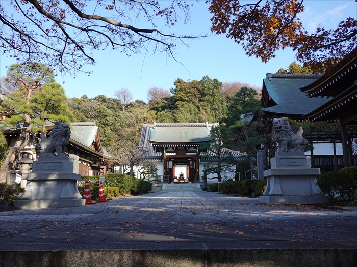 参道の石段を上る。左右に狛犬、その先中央に「中雀門(ちゅうじゃくもん)」。左手には多くの石像、石碑が並んでいた。石段の上から「山門」を振り返って。燈籠・「八角青銅燈籠」(右)。燈籠・「八角青銅燈籠」(左)。獅子像(右・阿形)。獅子像(左・吽形)。次に訪ねた「不動殿」前には、石舟の如き鉢?の上に乗った「聖観音菩薩像」が。巨大な手水鉢なのであろうか。「感應」と刻まれていたが。「感應」とは仏語で人に対する仏の働きかけと、それを受け止める人の心。また、信心が神仏に通じること と。優しいお顔の「聖観音菩薩像」。二人の童子が支える蓮華座に結跏趺坐で鎮座する「聖観音菩薩像」。二重円光を背負い、左手に開蓮を持つ、右手の印相は来迎印。左下に「龍の吐水口(とすいこう)」。日本では昔から龍神が水を司る神さまとして崇められてきた。水はすべてのいきものにとって命の源。命をつなぐ水は尊いものであり、神道(自然信仰)では穢れや邪気を祓う神聖なものとされた。神社の手水舎で、左手、右手と水をかける行為は、心身を清めるために行うもので、この水を「龍神から出ている水」と見せることで「神聖な水である」ことを表現しているのである と。「相生松(あいおいのまつ)」。相生松とは、雌株・雄株の2本の松が寄り添って生え、1つ根から立ち上がるように見えるもの。また、黒松と赤松が1つの根から生え出た松のこと と。「相生松」碑。「昭和平成伽藍恢興之碑」「昭和」の文字がひっくり返した鏡文字のようになっていたが、「昭和」の『異体字』であると以前に国文学科卒の師匠より。右手にあったのが「不動殿」。「不動尊」碑。内陣に近づいて。見事な彫刻の「常香炉」。不動殿には「不動明王像」、「大黒天像」、「愛染明王像」を安置。中央に「不動明王像」が鎮座。右手に「大黒天像」。左手に「愛染明王像」。見事な「天蓋」。ズームして。石段方向を振り返って。「不動殿」と「浄聖殿」との間の石庭の如き庭を見る。「道元禅師御道詠の碑」「峰の色 渓(たに)のひゞきも 皆ながら 我釈迦牟尼の 聲と姿と」。【季節の移ろいとともに変わってゆく峰々の色、そして聞こえてくる谷川のせせらぎ、自分を取り囲んでいる自然の姿そのものの中に仏(釈迦牟尼)の姿を見る、道元禅師の澄んだ心の有り様を素直に感じさせてくれる歌。仏は、お経やお堂の中だけにいるのではありません。山や川や海や雲や、世の中全てのなかに仏はいます。】とネットには。再び、歩いて来た「山門」方向を振り返って。その先右手に、入母屋造銅板葺で妻入の「浄聖殿」大棟と向拝の唐破風に獅子口、軒廻りは一軒繁垂木で組物は舟肘木、拝は猪目懸魚で唐破風の兎毛通も猪目懸魚、妻飾は狐格子。両開きの桟唐戸と上に菱格子欄間、脇間に花頭窓本尊の「千手千眼観世音菩薩坐像」を安置。扁額「浄聖殿」。この日は「法要中つき、お参りは本堂にてお願いいたします」と。「浄聖殿」内に安置されている本尊「千手千眼観世音菩薩像」をパンフレットから。像高34.5センチメートル、総高83センチメートル、玉眼、金色相、寄木造の坐像。室町後期の作と。そして切石敷の参道を進んで行くと正面に切妻造銅板葺の「中雀門」。左右に白壁の築地塀のような回廊を設けた中雀門を通して本堂(法堂)が見えた。近づいて。「功徳山 早雲禅寺 天嶽院」と。扁額は「湘中早雲禅寺」。「常香炉」越しに「本堂・法堂」を見る。中雀門の真ん中に「常香炉」が置かれ、香炉に乗っている鞠を踏む唐獅子と、左右の取っ手部に取り付けられた阿形吽形の龍が参拝者を迎えてくれたのであった。「常香炉」には寺紋の「北条鱗」が。鎌倉の北条と小田原の北条(後北条)。家紋も同じ三つ鱗のようでいて微妙に違うらしい。「正三角形の三つ鱗」は、「鎌倉時代の北条氏(特に得宗家)」が使用していたと言われている。一方、「二等辺三角形の三つ鱗」は得宗家以外の北条氏や「戦国時代の後北条氏」が使用しており、「北条鱗紋」と呼ばれる事がある。ただ、得宗家が二等辺三角形の三つ鱗を使用していた形跡もあるのだと。こちらに関しては厳密にどちらが使用していたかを区分するのは難しいと言えるのだ と。中雀門内側、中央上方。通して入る日の光が独特の雰囲気をかもし出す、弓欄間( ゆみらんま / 火焔欄間 かえんらんま )。中雀門内側、向かって右上の「欄間彫刻」。中雀門内側、向かって左上の「欄間彫刻」。「法堂」をパンフレットより。法堂の前は基本的に白砂で構成するのも、昔の儀式用の礼の場という名残であると。「本堂・法堂」の内陣をパンフレットから。佛師松久宗琳謹作 一佛両祖を奉安する。(釈迦牟尼佛、道元禅師、螢山禅師)。「相中留恩記略所載」もパンフレットより。天嶽院の歴史は真言宗の古寺「不動院」から始まる。源頼朝公が治承四年(1180年)、伊豆に兵を挙げ鎌倉を目指す途中立ち寄り、 不動明王様に大願成就の祈願をされたとの伝説がある。明応四年(1
