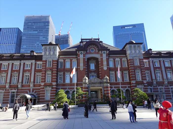 「世田谷区の淨真寺」の見事な紅葉を楽しんだ後は「東京駅」に向かう。「東京駅丸の内駅前広場」に出て「東京駅」を見る。1914年(大正3年)に竣工した赤レンガ造りの丸の内口駅舎は辰野金吾らが設計した。2003年(平成15年)に丸の内駅舎は国の重要文化財に指定されており、重要文化財指定の駅建築物は当駅と門司港駅(福岡県北九州市門司区)のみである。また、「関東の駅百選」認定駅でもある と。駅舎は辰野金吾と葛西萬司が設計し、そのデザインは「辰野式ルネッサンス」と呼ばれ皇室用玄関である「天皇の駅」としてのシンボリックな意味を持たせる事になった。中央停車場建物展覧図 / 辰野金吾、葛西萬司 / 1910年(明治43年)。品川白煉瓦製の赤煉瓦を外観に使用、構造煉瓦として埼玉県深谷市から鉄道輸送されたレンガと鉄筋造り、3階建て総建坪9,545平方メートル・長さ330メートルの豪壮華麗な洋式建築である。南北にそれぞれドーム状の屋根があり、当時は丸の内南口が乗車口、丸の内北口が降車口と分けて使用されていた。中央の玄関は皇室専用とされ、規模は小さいものの、細かい装飾が各所に施されていた。中央玄関と東西の一般出入り口との間に、各1つ別の出入り口があるが、これは荷物の搬入搬出口として設けられた。開業年の1914年(大正3年)は第一次世界大戦の開戦の年でもあり、青島の戦いを指揮した陸軍司令官神尾光臣中将が凱旋し、皇居に参内するイベントに合わせて開業式を行った。式典では、鉄道の草創期から建設を牽引してきた大隈重信首相が演説した。アムステルダム中央駅が当駅舎を設計する際のモデルになったという説があるが、1988年(昭和63年)以降に藤森照信らをはじめとする西洋建築研究者により設計者の系譜や建築様式の両面から、否定的な意見も出ている。辰野は英国留学の経験があり、首都ロンドンのターミナル駅を参考にした可能性もある と。太平洋戦争末期の1945年(昭和20年)5月25日、アメリカ軍による東京大空襲(山の手大空襲)では丸の内駅舎の降車口に焼夷弾が着弾、大火災を引き起こした。これによりレンガ造の壁やコンクリート製の床など構造体は残ったが、鉄骨造の屋根は焼け落ち、内装も大半が失われた。同年8月の終戦直後から修復計画を立案し、年末から1947年(昭和22年)にかけて修復工事を行った。3つのドーム部分の外壁は修復したが、安全性に配慮してその他の焼失の著しかった3階部分内外壁は取り除いて2階建てに変更。中央ドームは木造小屋組で元の形に復原し、南北両ドームは丸型から台形に変更。軒蛇腹・パラペットや壁面、柱型、窓枠などは2階建てになっても忠実に復元した。南北ドーム内のホール天井はローマのパンテオンを模したデザインに変更、といった内容だった。仮の修復だったが、当時の鉄道省や大林組の努力で日本の中央駅として恥ずかしくないデザインで修復をした逸話が伝えられている。中央部高さは28mと。軒高さ約17m、切妻部頂部高さ約23m。北ドーム高さは約35m。東京駅改装後に営業を再開した「東京ステーションホテル」は休館前に58室だった客室が150室と増え、ラグジュアリーホテルとして質も大きく向上した。改装された丸の内駅舎43,000平方メートルのうちホテルは20,800平方メートルと丸ノ内駅舎の半分近くを占め、駅舎の3階部分の大半と4階の一部はほとんどがホテルの客室で、2階にも客室の一部、1階と地下にはホテル宴会場が入っている。東京駅南北のドームの中心の空間を駆り囲むように客室が配置されたドームサイドが28室、駅舎の丸の内側に面して並ぶパレスサイド81室、他にクラシックタイプ29室や室内二階建てのメゾネット7室、スイート4室、ロイヤルスイート1室の合計150室。「新丸の内ビルディング」。「新丸の内ビルディング」は、東京都千代田区丸の内一丁目に所在する超高層ビルである。三菱地所のオフィスビルで、地下1階〜7階は商業施設となっている。略称は新丸ビル。2007年(平成19年)4月19日に竣工、4月27日に商業施設フロアがオープン。「丸の内ビルディング(丸ビル)」は、「行幸通り」を挟んで向かい側に所在する。「JPタワー(ジェイピータワー)」「JPタワー」は、東京都千代田区丸の内二丁目(東京駅前)にある超高層ビル。日本郵政グループの初の不動産事業である。建築物としては、旧東京中央郵便局舎を一部保存した低層棟と最高軒高200.0 mの高層棟から構成され、旧局舎の保存部分は免震構造で構造躯体を保存している と。「KITTE 丸の内」は昭和6年に竣工した旧東京中央郵便局の局舎を一部保存・再生した区画と新たに建築した区画からなる、過去と現在がつながる空間。地下1階から地上6階までの7つのフロアには「Feel JAPAN」をコンセプトに、日本の“心地よさ”“奥深さ”“愉しさ”を伝える98のショップ&レストランを揃えた。東京丸の内で、人と人、街と街、時代と時代を結びつけ、たくさんの「ワクワク」を提供し、いろいろなヒト・モノ・コトとの出会いをつないでいく。開業:2013年3