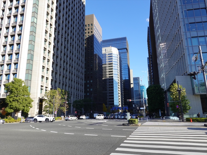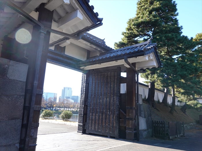 「枡形」の先にあったのが「外桜田門」の「高麗門」。「高麗門」は、文禄・慶長の役が行われた1592年から1598年の間に造られ始めた城門である。鏡柱と控柱を一つの大きな屋根に収める構造の薬医門を簡略化したもので、屋根を小ぶりにして守備側の死角を減らす工夫が施された。江戸時代以降には、城郭に限らず神社仏閣や町の出入り口を仕切る木戸門などとして多く築造された。柱の構造は、鏡柱2本と内側の控柱2本から構成されている。4本の柱は直立しており、2本の鏡柱上に冠木を渡して小さな切妻屋根を被せ、鏡柱と内側の控え柱の間にも小さな切妻屋根を被せる。慶長年間までは姫路城「への門」や名古屋城「本丸二の門」のように直接、冠木に屋根をかけていたが、江戸時代初期以降に、この江戸城「外桜田門」の高麗門のように冠木の上に束が立てられ、小壁が立ち上がった姿のものが造られるようになった とウィキペディアより。「外桜田門」の「高麗門」の扉。現在地◯はここ。「高麗門」を潜り右側の石垣。その先も。「桜田濠」方向を見る。「凱旋濠」の石垣の付け根上に建つ「渡櫓門」。「高麗門」を振り返って。「重要文化財(建造物)指定 昭和三十六年六月七日 旧江戸城 外桜田門現在この門は桜田門と呼ばれますが、正式には外桜田門といい、本丸に近い内桜田門(桔梗門)に対してこの名が付けられました。古くこの辺りを桜田郷と呼んでいたことに由来します。外側の高麗門と内側の渡櫓門の二重構造からなり、外枡形という防御性の高い城門で、西の丸防御のため異例の大きさで造られました(320坪)。建築されたのは寛永年間(1624~1644)とされ、現存する門は、寛文三年(1663)に再建された門がもとになっています。大正十二年(1923)の関東大震災で破損し、復元されました。万延元年(1860)三月三日、この門外で大老井伊直弼が水戸藩脱藩士に暗殺されました(桜田門外の変)。」1.外桜田門2.西の丸3.内桜田門「内桜田門」は、江戸城本丸南口の通用門で、本丸へ向かう際には、大手門と並ぶ登下城の門でした。そのため、門の警護は譜代でも6~7万石の大名があたっていました。内桜田門とは、外桜田門(現在の桜田門)に対しての呼称ですが、江戸時代から桔梗門(ききょうもん)という別称が用いられていました。別称の由来は定かではありませんが、寛永の頃、上洛する際に御帰京の祝儀を表したから、あるいは、徳川家康入府の際、太田道灌時代の名残を残す桔梗紋の瓦が残っていたからといわれています。門の鬼瓦には、現在でも桔梗紋が施されています。門は1614年(慶長19年)に造られたもので、桔梗濠沿いの石垣も1620年(元和6年)に造築されています。現在も手前の高麗門(こうらいもん)と右手の渡(わたり)櫓門(やぐらもん)からなる枡形門(ますがたもん)が残っています と。「高麗門」とその右奥に「渡櫓門」。「桜田門」交差点の手前から「法務省旧本館(中央合同庁舎6号館赤れんが棟)」を見る。霞が関中央官庁案内現在地は●ここ。「東京メトロ有楽町線の「桜田門駅」入口にあった案内板。外桜田門国指定重要文化財 1961年(昭和36年)6月7日指定桜田の名は、この地が古代に桜田郷と呼ばれていたことに由来し、江戸の主要道が通過する場所でした。徳川家康入国直後の絵図には「小田原口」と記載されています。門周辺の石垣は、1614年(慶長19年)真壁藩(現在の茨城県)藩主浅野長重によって築かれ、寛永年間(1624~1644)に門が建築されました。門の周囲には、有力外様大名の屋敷が多くありました。1860年(万延元年)の桜田門外の変は、彦根藩(現在の滋賀県)藩主で大老の井伊直弼が屋敷から登城中に水戸浪士に襲撃された事件です。1923年(大正12年)の関東大震災で門が壊れましたが、再建され現在に至っています。」「外桜田門「旧江戸城写真帖」1871年(明治4年)撮影」。「外桜田門前から櫻田堀方面を描いた明治初期の錦絵「東京三十六景 外さくら田」千代田区教育委員会」「江戸城を取り巻く地形と文化財」。正面に「警視庁本部庁舎」。「旧警視庁」の写真をネットから。「桜田濠」を見る。横断歩道を渡り、桜田門交差点南側からから国会議事堂をズームして。この日はここまでとして、引き返して、再び「高麗門」とその右奥の「渡櫓門」を振り返って。再び「法務省旧本館(中央合同庁舎6号館赤れんが棟)」を見る。「桜田通り・国道1号」の日比谷方向をを見る。「警視庁本部庁舎」の屋上からヘリコプターが飛び立つ。。引き返して、「高麗門」を潜り、「枡形」から「渡櫓門」を見る。「枡形」から「渡櫓門」をズーム。「高麗門」を振り返る。「渡櫓門」下から「皇居外苑」を見る。皇居の大きさは、宮内庁管理部分の敷地が約115万m2で、東京ドーム約25個分もあります。濠の面積も含む東京都千代田区千代田の面積は1,425,500m2、皇居外苑も含めた総面積は約230万m2もあるとのこと。引き返しながら「丸の内2丁目」の高層ビル群を見る。「丸の内1丁目」・「大手町1丁目」の高層ビル群。「丸の内警