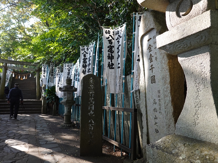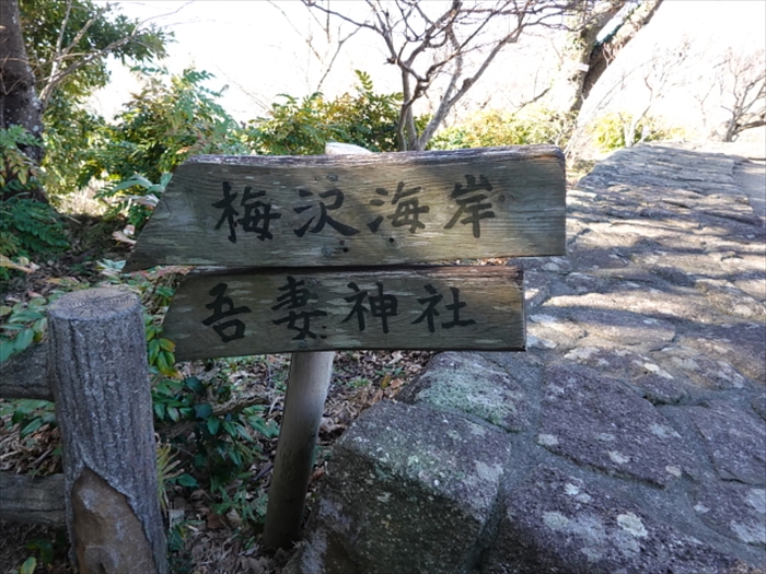 「吾妻山公園」の「菜の花畑」を後にして、「芝生広場」の南・海側に向かって進む。「梅沢海岸 吾妻神社」への案内板。細い山道を下ると、「吾妻神社」の境内に。境内の隅にあった石碑群。中央の庚申塔:三猿 笠付高さ:132センチメートル造立年月日:元禄4年(1691年)9月上旬銘文:「汝等前行是菩薩道」(正面種字3種)「漸々修學悉當成佛」「奉新造立庚申供養四面塔祈願」 「成就所」「相刕淘綾郡梅沢村/元禄四辛未天九月上旬」左側の石仏。以前はお顔がなかったが、お顔の如き石が載せられていた。廃仏毀釈の頃、仏像を壊す運動がおこった。明治初期に神仏分離によって神道を押し進める風潮の中で石仏の顔を壊したのであろう。この石仏も同様に以前はお顔がなかったが。「湯殿山講中供養」と刻まれていた。下部には奉納した12名の氏名も。割れかけている石碑には「奉納 吾妻神社改築寄附 金参阡五百圓也」と。社殿への参道の左側にあった「手水舎」。狛犬(吽形)。狛犬(阿形)。二の石鳥居。廻り込んで。珍しい松の巨木のようであったが。「奉献 日本大相撲協會 武藏山武」と。「武藏山」👈リンクは、神奈川県横浜市港北区出身で出羽海部屋に所属した大相撲力士。「武蔵山」は今でも神奈川県出身唯一の横綱第33代横綱。本名は横山 武(よこやま たけし)。扁額「吾妻宮」は地上に安置されていた。落下したが割れなかったと。こちらは、この日は訪ねなかった「梅澤口」の一の石鳥居。社殿に向かって進む。「吾妻神社の深イイはなし吾妻神社は梅沢自治会が運営しています。自治会が推任した12名で宮係を構成、境内や清掃、社殿の維持管理を奉仕活動で行っています。元禄4年(1691年)一枚石彫の三猿日光東照宮の三猿を模倣して彫刻 山頂登り階段入口附近にあり 可愛く人気者ですよ」大鳥居を寄贈したのは武藏山 武(本名:横山 武)。第33代横綱。186cm、116キロ県横浜市港北区日吉出身 出羽海部屋 1909年(明治42年)12月5日生貧しい農家の5人兄弟の長男として生まれ、幼い時に父親が・・・・昭和5年に吾妻神社で奉納相撲し、大鳥居を寄贈する。昭和10年第33代横綱となる。神奈川県出身で横綱になったのは武藏山1人です。以下略・・・石灯籠(右)。昭和5年建立。石灯籠(左)。昭和5年建立。「吾妻神社 由緒記吾妻神社は梅沢の氏神でその創建は第十二代景行天皇の朝に始まると云う。弟橘媛命を祭神とし日本武尊を配祀する。日本武尊は景行天皇の第三皇子である。天皇にそむく蕃族を征伐するため東北におもむく途中、三浦半島走水から海路上総に渡るき暴風突如に起り、命は夫にかわり海神の怒りを鎮めるため夫の武運を祈り、別れに臨んで往時を回想され「サネサシ相武ノ小野ニ燃ユル火ノ ホナカニ立チテ問ヒシ君ハモ」と海中に身を投じた。するとたちまち海は穏やかになったと云う。その七日後に命の御櫛が海辺に流れつき埋めて御陵を造り、この地を埋沢といい神社前下一帯を梅沢という。この海岸に命の小袖が磯辺に漂いこれを山頂に祭ったことから、袖ヶ浦海岸と呼んでいる。また日本武尊は東北戦 が終り帰路相模の国から足柄を通り甲斐に出る途中、峠ではるか東方の海をながめ、「ああ吾が妻」と嘆かれたと云う。弟橘媛命の御神像は木彫の千手観音で、既に千数百星霜を経過し、御神像は現在梅沢山等覚院に安置されている。吾妻神社は「縁結びの神」として知られ例祭日は 例大祭 一月 第三日曜日 例祭 八月 十五日」」正面に「吾妻神社(あづまじんじゃ)」の拝殿・社殿。創建は第12代景行天皇(在位西暦71 ~ 130年)の時代たと伝えられてます。言い伝えには日本武尊(やまとたける・景行天皇の第2子)が東征の途中、海路上総(千葉県)へ渡ろうとすると突如として暴風が起こリ、妻の弟橘媛命(おとたちばなひめのみこと)は海の神の怒りを鎮め、夫の武運を祈るため荒れる海へ身を投じるとたちまち海は穏やかになりました。その後、海辺に流れ着いた命の櫛と小袖を人々が山頂に運び埋めました。この場所が吾妻神社であり、前一帯を埋沢(うめさわ)、海岸を袖が浦と言うようになったと伝えられています。日本武尊が東北平定の帰路、相模の国から甲斐へでる途中の峠で遥か東の海を眺めながら「あずまはや(吾が妻の意)」と嘆き、亡き妻を偲んだところから命(にこと)を祀った山を吾妻山と呼ぶようになったと言います。」と。境内の桜の蕾も膨らんで来ていた。社殿に近づいて。唐破風下の彫刻。社殿を設計したのは「伊東忠太」氏とのこと。「吾妻神社社殿について現在の社殿の建立 上棟 明和17年10月17日 完成 昭和18年11月 7日設計 昭和5年(1930年)4月設計者 工学博士 伊東忠大 山形県米沢市出身 東京帝国大学名誉教授(1867年~1954年)伊東忠太が設計した有名な建物橿原神宮(奈良県)平安神宮(京都府)弥彦神社(新潟県)築地本願寺(東京都)など多数「吾妻神社 社殿について」110年(景行天皇)頃 弟橘媛命を祭神として創建741年(天平13年)頃 僧 行基が千手院、東光寺を創立824~834年(天長)頃 僧 空海の弟子 杲隣が神