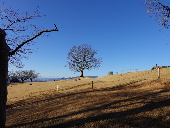 そして、「吾妻山」頂上・「吾妻山公園」の「芝生広場」に到着。入口から約20分であっただろうか。雲一つない快晴。人の数も少なく。「早起きは三文の徳」とはこのこと。宋の時代の中国からのことわざではあるが。早朝でもあり、外国の方々の姿はなかった。さすがに、SNSではこの「吾妻山」の情報は拡散されていないのであろうか!?光る海・相模湾。芝生広場の「エノキ」も存在感を!!そして展望台の先に富士山の勇姿が現れた。「吾妻山 標高 一三六・ニm」と。正面に一面の菜の花畑。展望台に到着。富士山と菜の花のコラボの撮影は後程とし、まずは丹沢山塊、富士山、箱根の山々、そして真鶴半島、伊豆半島をカメラで追う。円形の展望台の中央にも円形の案内表示が。近づいて。東西南北が解る関東地区の地図に中に現在地を表示。正面に見事な富士山の勇姿。パノラマ撮影、富士山の左側。パノラマ撮影、富士山の右側。後に訪ねた管理棟で頂いた「吾妻山公園山頂からの眺望」絵図の載ったパンフレットから。山の名の案内写真がここ展望台にも。丹沢山地の方向。近づいて。上記の写真案内板を見ながら。右から、大山、ヤビツ峠、岳ノ台をズームして撮影。大山をズームして。山頂付近は雪が残っていたが、いつの積雪か?案内写真に近づいて。右からヤビツ峠、塔の台、二ノ塔、三ノ塔、鳥尾山、丹沢山(奥)、塔の岳右から、鍋割山、檜洞丸、同角ノ頭、檜岳をズームして撮影。丹沢山、塔の岳、鍋割山をズームして。。鍋割山、檜洞丸をズームして。富士山、箱根の山々の案内写真。近づいて。今年は富士山の積雪が少ない。ジワジワとズームして。手前のお椀のような山は矢倉岳(870m)。矢倉岳は標高870mと低山ながら頂上では富士山の大パノラマが楽しめる、親子でも登れる人気の山だが、実は世界的にも珍しい地球活動の遺産が潜んだ山であると。貫入マグマが地下で冷え固まったもの(=深成岩)が隆起と浸食によって地表に現れ、海底から高さ870mまで隆起。その地表に出現するまでのわずか115万年というスピードが世界的に見ても珍しく「世界最速級」である と。115万年が〝わずか〟…地球を語るダイナミックな時間感覚。左に「宝永山」。山頂右手にはジグザグの下山道・吉田ルートも確認できた。ここまでが我がデジカメの限界。右のとがった山が箱根の金時山、その左に、明神ヶ岳。金時山をズームして。金時山は粘性の高い金時山溶岩から構成されており、他の古期外輪山と比べると山頂付近の傾斜が非常に急で、遠くから見るとひときわ高い峰が天を突いているように見える。この姿が、顔から急に突き出たイノシシの鼻のように見えるため、かつては猪鼻嶽(いのはなだけ)や猪鼻ヶ嶽(いのはながたけ)と呼ばれていた。江戸時代になると、坂田金時(坂田公時とも)の故郷が足柄山であるとした「金太郎伝説」ができ、この頃から金時山(別表記:公時山、きんときやま)と呼ばれるようになった。その後、1900年(明治33年)に童謡「金太郎」がつくられ、広く知れ渡るようになった と。右から神山、駒ケ岳、二子山、白銀山。神山は神奈川県足柄下郡箱根町にある標高1,438mの山で、箱根山の最高峰である。古くから神の山として崇められてきたことからこの名がついた。神山、駒ケ岳をズームして。箱根駒ヶ岳は、箱根山の中央火口丘のひとつの峰で、神奈川県箱根町にあり、標高は1,356メートル。頂上は草地で見晴らしがよく、箱根園から全長約1,800メートルの箱根駒ヶ岳ロープウェーで頂上部分まで登ることができる。頂上には、箱根神社の奥宮に当たる「箱根元宮(はこねもとつみや)」(1964年建立)がある。二子山、真鶴半島、伊豆半島方面の案内図。右側に近づいて。二子山(ふたごやま)をズームして。右:上二子山、左:下二子山。二子山は箱根火山のカルデラ内の南東側に位置し、約5,000年前の噴火で形成された溶岩ドームである。箱根駒ヶ岳、神山、台ヶ岳などとともに中央火口丘を構成する。その名のとおり、双生児のように二つの峰が並んでおり、北側が上二子山1,099m、南側が下二子山1,065mとなる。上二子山の山頂部には、NTT東日本やNTTドコモの二子山無線中継所があり、箱根の西側にある鞍掛山無線中継所とともに、東京方面と東海地方を結ぶ無線中継網の重要な拠点となっている。正月の箱根駅伝の際などは二子山無線中継所がTV放送の拠点となり、毎年紹介されている。現在は自然保護のため、一般の入山は禁止されている と。大観山とその下に国府津、鴨宮、小田原の街並み。大きな白き高層マンションは、国府津駅の手前にある地下1階、地上14階建の「ダイヤモンドライフ湘南」。建物最上階には温泉展望大浴場があり、ゆっくりと温泉に浸かりながら、相模湾を一望できる。 目の前の国道は、箱根駅伝のコースとなっている と。大観山👈️リンク をズームして。小田原市街をズームして。小田原城の姿も確認できた。さらにズームして小田原城を。山頂展望台にあった無料の望遠鏡