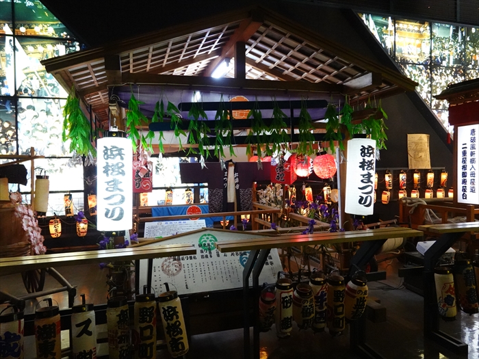 「浜松まつり」の様子が一面に。入口へと引き返しながら「御殿屋台」の全景をカメラで追う。「唐破風軒搦入母屋造 二重屋根御殿屋台」と「底抜け屋台」方向へ。「唐破風軒搦入母屋造 二重屋根御殿屋台」方向を。「模型屋台」の展示コーナーと「底抜け屋台」方向を。「参野町屋台」方向を。「曳綱 (御殿屋台を引く綱) 糸枠 (凧を揚げるために必要な麻の凧糸を巻いている糸車) 実際に使用していたものです。「成子町御殿屋台曳綱展示昭和28年作成 麻製 太さ 2.3cm 長さ 約100m」 「ペットボトル提灯制作秘話浜松まつりが大好きな一家に生まれた息子は、まつりが終わった後もDVDを見ながら一人で練りの真似をする程のまつり好き。大人が持っている提灯を持ちたくて持ちたくて仕方がない様子を見て貸してあげたところ・・・。高価な提灯は見るも無残に破壊され、挙句、持ち手の部分で頭をぶつけて大泣きする始末。そこで、身近にあるPETボトルを利用しておもちゃの提灯を作ってあげたところ息子は大喜び。そんな思い付きで我が子のために作り始めた提灯。せっかく作るなら「それなりに強度があり、雨にも強く、夜には光らせることもできて、見た目はそっくりに・・・。そんな提灯を格安で作ろう」と、主婦目線から家にある物や100円ショップで入手できるものを使い、壊れても簡単に作り直せるようにと試行錯誤し、マイナーチェンジを繰り返した結果、この作品の形に収まりました。作品の制作にあたり、知人友人をはじめ多くの方々のご協力により約2年の歳月をかけ、浜松まつり参加町全174ヶ町の提灯柄を収集することができました。」。ズームして。全部の町内がありそう! ナイスアイディア!!「御殿屋台引回し」👈️リンク。「2024年 浜松まつりフォトコンテスト入賞作品及び応募作品浜松まつり会館では毎年ゴールデンウィークに開催される浜松まつりの魅力を発信すべく、フォトコンテストを実施しています。2024年は5年ぶりに制限無しでのまつり開催となり、応募作品も89点ありました。多数の応募ありがとうございました。今回は入賞作品及び応募作品をすべて展示させていただきました。ぜひこの機会に浜松まつりの魅力や熱気・臨場感を作品から感じていただけましたら幸いです。(一部選外となっている応募作品(規格外)は除く) 浜松まつり会館 館長」作品「【2024 浜町市長賞】草野成憲様 『開幕』」 と。「昔の屋台」の写真展示。九谷焼「飾皿」👈️リンク。絵画「浜松まつり」。「浜松まつり👈️リンク のあらまし (昭和60年4月1 7日開館)五月を彩る浜松凧あげ合戦👈️リンクは毎年5月3・4・5日の三日間中田島砂丘で盛大に開催されます。古くは農作物の吉凶や、人の運勢を占ったり、又、戦国時代には軍事的にも利用されたりしてきましたが、やがて子供の成長や息災を凧に託して祈ったり、祝ったりするようになりました。個々に揚げていた凧も互いに竸いあい派手なもの、大型のものとなり団体競技へ移行してきました。明治中期以降屋台の誕生に伴って、各町豪華絢爛たる屋台が続々とお目見得すると共に、昼は百数十枚の大凧の切りあい合戦が繰り広げられ、夜の訪れともなれば灯火に浮出された彫刻は幽玄の世界へ誘い、将に数十台の動く不夜城の再来と云ってよいでしよう。この全国に例を見ない昼夜の演出は海外の観客を含めニ百数十万人に及ぶ有数の祭りと発展してまいりましたが、当館ではこの祭りの興奮を映像と音響で居ながらにしてその全容をご覧いたける仕組となっています。」絵画に近づいて。寄贈:井上市三郎様。さらに近づいて(左)。さらに近づいて(右)。受付まで戻る。ポスターと浜松名産土産物。土産物展示。懐かしい「井伊直虎」、井伊直虎を演じたのは柴咲コウ。「浜松まつり会館」を後にして、風車公園👈️リンク に立つタワーを。これは「浜松まつり会館」のシンボルタワー。「浜松まつり会館」と。 ・・・もどる・・・ ・・・つづく・・・