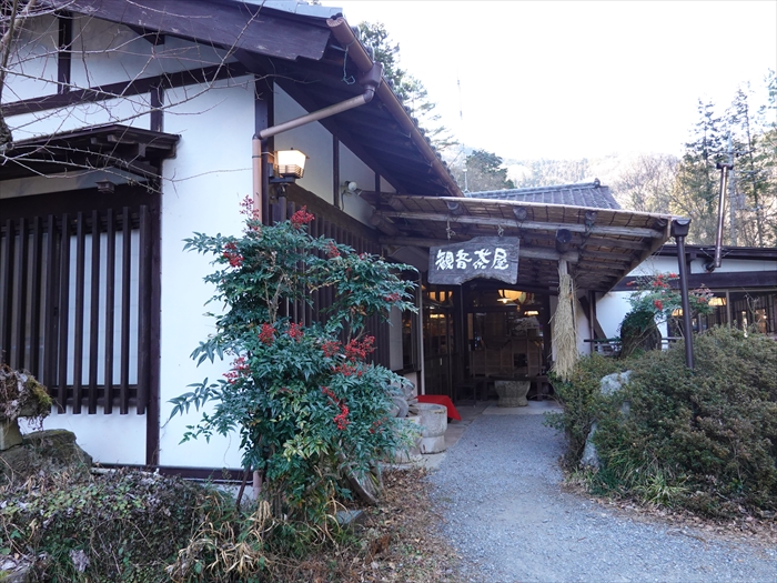 そして「尾ノ内氷結」の係り員のオジサンにオススメの昼食場所を教えて頂き車で向かう。国道299号をひたすら戻り、左折して坂道を上って行くと左手にあったのが「観音茶屋」。埼玉県秩父郡小鹿野町飯田2359。駐車場の大型の観光バスが駐まっていた。駐車場の脇にあった「仲良し夫婦・双体道祖神」。「観音茶屋」の店内に。様々な民芸品が並ぶ。素朴な人形が並び心が和らぐのであった。茶碗、取り皿、箸置き。「干支 吉祥飾紙干支の吉祥飾紙は、新年を迎え、家運隆昌や招福開運を願うために玄関や仏の間などに飾られる魔よけ・招福の飾りです。古くから縁起物として各ご家庭に祀られて参りました。【家内安全】【無病息災】【商売繁盛】などご祈願し、原則として南もしくは東の方角を向くように貼ります。」吊るし雛。「観音茶屋 うどんそば抄」。「観音茶屋 うどんそば抄さてさて皆様 召したるものは、ご當地名物 観音うどん 観音そばでございます。手でこねて 足でふみつけ 手で伸ばし ものの 手によりぶったぎる真心こめて茹であげたこれぞ手打ちの由縁でござる。さては汁は極上のかつお節にて だしをとり昔風味もあでやかにズルズルズルと召していただけば 四季の薬味が深山の味も伝えます。観音山は菜の宝庫 旬の薬味にこと欠きません。秩父しめじの天麩羅と山◯や柚子をぴりりと利いてまずは客先ご賞味ござれ。さてさて皆様の召したるものは地粉からなる観音そばと観音うどんにございます。當店婆の細腕で年ほど知らぬ力ナリとしぼりエッサヤホイサヤ打ちまし味を自慢にしてまする。 主」多くのワイン、日本酒、地酒も。地産の土産物コーナー。折しも、大型観光バスで来られていた方たちが、昼食を終え、土産物コーナーへ。クラブツーリズムの「冬の秩父を楽しむ!三大氷柱めぐりバスツアー2025」の参加者とのこと。「はちみつ」コーナー。「たかださんちのはちみつ」。そして「味噌煮込みうどん」を楽しんだのであった。年寄りには量が多かったですが、美味しかったので頑張りました。お面。こちらにも。ド迫力の般若面。様々な果実酒。ふくろう。ダルマ。「神変獄刀天大延寿神」(神変大菩薩役の行者)の由来弘法大師空海より百数十年も古い時代に密教・道教・神仙思想、さらには陰陽道をはじめ中国伝来の医薬術などを体得していたと思われる役の行者は我が国正史にも記録され、修験道の開祖に位置づけられて後年「神変大菩薩」と尊称されてきました。昭和六十三年五月手嶋了凰師は「吉野大峯山役の行者堂裏山に雷に打たれし倒木の根元にニ尺ばかりの木株ありて、我は神変大菩薩化現の霊木なり直ちに秩父神変嶽に飛翔祀るべし」との霊示を受けた了凰師は即日吉野蔵王堂に参じ一心にて祈りて、その霊験により吉野修験者による一大勝縁を得てこの霊木は見出されたのであります。ここ神変嶽は、北頂玄武 南麓朱雀 東流青竜 西道白虎の四神相応の聖山聖地として神変大菩薩御自身が千三百年余の時空を超えて選ばれた一大勝縁の浄地であります。 平成六年六月二十八日「神変嶽刀利天大延寿神」と霊告いただいた至尊の御霊格の御神体として山頂にお祀りされたので有ります。この霊木自体が真姿なる信仰登拝者に神変大菩薩の絶妙不可思議な救済御加護力を体現下さるのであります。故にこの聖山を神変嶽と崇めてその周辺の自然の神域を穢すことなく心身清浄なる登拝行をすることによって神変嶽刀利天大寿神の不可思議威神力を感得させて戴くのであります。 宗教法人光珠院(岩殿沢たらちね観音) 手嶋了凰 神変講奉賛会神変嶽参道入口」「観音茶屋」で昼食を済ませた後は、皆野両神荒川線を下り「三十槌氷柱」に向かって進む。荒川の手前にある国道140号に出て右折。この先を左折し秩父湖方向へ。そして「三十槌の氷柱」入口に到着。 「三十槌の氷柱 荒川右岸 1月中旬~2月中旬」と。 ・・・もどる・・・ ・・・つづく・・・