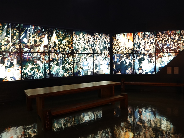 そして以前に訪ねた「中田島砂丘」の北側にある「浜松まつり会館」の駐車場の到着。車を降りると、上空には数個のタコ⇦が揚がっていた。色とりどりの「浜松まつり会館」と書かれた幟旗が風にはためいていた。「浜松まつり会館」入口が二つの建物の間の奥に。「もてなしの町浜松 歓迎 Welcome to Hamamatsu元禄時代からの歴史と伝統を誇る「浜松まつり」を再現!大凧と御取屋台の展示館内のご案内●ハイビジョンによる浜松まつりの紹介●凧糸製造過程の見学(凧糸製造資料室)●音と映像によるまつりの再現 凧あげ合戦・ラッパの音色と激練の声に包まれて 夜のまつり・華やかな御殿屋台の行列●浜松まつりグッズ・郷土土産の売店コーナーなど」「入口 浜松まつり会館」。開催済みのポスターが2枚・「浜松まつり 2024 5/3(金 祝)、4(土 祝)、5(日 祝)」。「浜松まつり 2017 5/3日(祝)、4日(祝)、5日(祝)」。「浜松まつり会館」。エントランスホール。ありがたいことに、高齢者(70歳以上)は無料と。移動して。「ご殿屋台👈️リンク 模型 縮尺五分の一」。「浜松まつり会館案内図」。「浜松まつり会館案内図」。1.ハイビジョンルーム2.浜松出世太鼓3.凧糸製造室4.大凧展示室5.御殿屋台展示室そして最初に1.ハイビジョンルーム を訪ねた。浜松まつり👈️リンク を8分間のダイジェスト映像にまとめました。鮮明リアルなハイビジョン映像で浜松まつりをご紹介します と。凧揚げ合戦👈️リンク。御殿屋台の引き回し👈️リンク。2.浜松出世太鼓👈️リンク「遠州のひびき浜松出世太鼓元亀3年(1572年)12月、三方原の戦いに勝った武田勢が、徳川家康の居城の~浜松城を取り囲みなした。この時、徳川勢の志気をたたかめるために、酒井左衛門尉忠次が気魄あふれる「時の太鼓」を、打ち鳴らしました。すると武田勢は、燃えさるかがり火の中に響きわたる太鼓の音におそれをなして、兵をひきあげてしまいました。家康は命を救われ、その後の運命を変えるきっかけになったのです。この故事にならって誕生した「浜松出世太鼓」は、家康ゆかりの地、浜松にふさわしい郷土芸能として注目を浴びています。」「浜松まつり 5/3.4.5」「浜松まつり」とは、毎年5月3,4,5日に開催されるおまつり。昼間は中田島砂丘で凧揚げ合戦を、夜間は市街地で御殿屋台が引き回されパレードなどがおこなわれる。熱気と興奮に満たされるまつりの開催には、住民に限らず100万人以上の観光客が訪れるほどの規模。現在は浜松市内の170もの町が参加しており、盛り上がりの絶えないまつりのひとつとして知られている と。3.凧糸製造室。「方撚り機械」とその手前には「現代版?の糸巻き機」が。「凧糸製造機械」。「撚り糸状のものをひねる。又は、数本の細い糸などをひねって、からみ合わせて、1本の紐などを作る。」「凧糸製造機械(凧糸製造最終工程)片撚り(より)機械で撚った糸をニつのドラムに移し、右回転で、2本の糸を編み、1本の太さ約5mmの凧糸が完成する」「方撚り機械(旧型)」(左)と「方撚り機械(改良型)」(右)近くに置かれたテレビ画面には「方撚り機械」の動きが映像から理解できたのであった、「凧糸製造室のご案内」。「凧糸製造室のご案内ここでは浜松まつりの凧揚げ合戦に使用する麻糸(規格品直径5mm )製造機を展示しています。数年前迄ここで実際に凧糸を製造していました。麻は一年草で大変成長が早く、毎年3月に種を蒔き、8月末頃に収穫されます。(高さ2m位)この麻は古くから縁起の良いものとされ、神事・結納などの祝い事や赤ちゃんの産着の模様等色々なところに使われています。」手前に凧糸の原料の原麻。栃木県鹿沼地区の原料となる原麻を使用します。「浜松凧の揚げ糸は、統一されています。浜松まつり 凧合戦の凧糸各町内公平を期すため、浜松まつり保存会によって原料が同じ麻の糸を使用し作られています。各町それぞれ2 , 000n ~ 3 , 000mを専用の糸枠に巻いて使用します。」1️⃣原麻 栃木県鹿沼地区の原料となる原麻を使用します。2️⃣麻こき 繊維をやわらかくし、3~5mm程度にほぐします。3️⃣片撚り ほぐした原麻を片撚機にかけ、直径2mmの糸をつくります。4️⃣本撚り 方撚りされた糸を2本合わせ、本撚機にかけ、直径4mmの凧糸をつくります。直径4mmの凧糸。様々な種類の「関東、東海地方の凧」が展示されていた。「凧あげ合戦用 八帖凧」と。「凧の大きさ」案内。浜松まつり会館の大凧展示室には、畳2帖(約1.5m四方)から10帖(約3.64m四方)までの大凧が展示されていた。浜松まつりの凧揚げ合戦では、約170か町の凧が揚げられ、そのうち4帖と6帖(1辺2.9m)が適していると。浜松まつり会館の大凧展示室では、凧揚げ合戦の様子が再現された展示や、凧のデザインが展示されていたのであった。「凧の大きさ」。10帖凧:□3.64mと。「浜松まつり徹底解説・浜松まつりはどんなお祭りですか?・浜松まつりは何をしますか?・ラッパはふけなくていいの?・凧を揚げるのって難しいの?・浜松まつりって危ないの?・子供