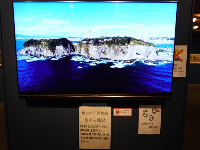 「翔んで!浮世絵 空から藤沢」 の約10分のビデオを見る。上空からの江の島。ズームして。渓斎英泉画「東海道五拾三駅名所古跡略記道中双六」より「鎌倉江之島廻路図」。「東海道五拾三駅名所古跡略記道中双六」「鎌倉江之島廻路図」「歌川国貞「東海道名所之内 鎌倉七里が浜の風景」」 ネットから。「江之島名勝江の島そして手前に小動岬」 。現在の上空からの写真。ズームして。江の島そして手前右側に小動岬そして腰越漁港。昭和初期の絵葉書「龍口遊園地よりの展望」。 現在の「湘南モノレール・湘南江の島駅」手前上空から 境川・相模湾を見る。「昭和初期の絵葉書「藤沢宿通り」」 。現在の「藤沢宿」と「富士山」。 「昭和初期の絵葉書「藤沢名所 市街の一部」」 。「歌川国綱「東海道名所之内四ツ谷」」。 「勝典作画「藤沢トラフィック図」南半分」。「四ツ谷不動尊」と「大山道入口」右手に田村通り大山道入口の石鳥居が。「四ツ谷不動尊」の「不動明王像」。 「広重「東海道 七 五拾三次之内の内 藤沢(四谷の立場)」 絵からは旅人相手の茶屋が建ち並んでいたにぎわいが感じられる。この地は大山道と東海道の分岐点で旅人はここで休息後、再び大山に向けて出発して行った。絵の手前左端に“四谷不動堂の道標”が見える。「歌川広重 東海道五十三次細見圖會 藤澤 平塚江三里半」。縦位置の図の上半分に各宿から次の宿までの道程を俯瞰的に眺めたものを描く。歌川広重「東海道五十三次細見図会 藤沢平塚江三里半」。正面には道中風俗「草原野休の図」が描かれていますが、背景の風景画は藤沢宿の「名所案内図」になっています。範囲は、東(左手)は「かまくら」「七面山(龍ロ寺)」「片瀬」「遊行寺(小栗の旧跡)」「江の島」から、西(右手)は「南湖立場」「四ツ谷追分」「大山道」までが描かれています。下半分には街道で見られる旅人の風俗画を描いている。 「歌川広重 東海道五十三次細見圖會 七 藤澤 南湖の松原 左り不二」。本図は、藤沢の宿を過ぎ、馬入川に至る途中の松並木が続く風光明美な所で、畝々と曲がる東海道を描く。「吉原左富士」とともに街道の左に富士の見える「南湖の松原左富士」として有名であった。広重晩年の竪版風景画揃物の一つで、他に「富士三十六景」「名所江戸百景」「六十余州名所図会」がある。藤沢(四谷の立場)の上空からの写真。「南湖の左富士碑」上空からの富士山の姿。「歌川広重「五十三次名所図会 八 平塚馬入の渡し大山遠望」(竪絵東海道)」。茅ヶ崎側から相模川を挟んで平塚側を望んでいる。対岸には馬入村が描かれており、富士山・大山・丹沢山を遠望することができる。現在の航空写真。「馬入の渡し跡」上空からの写真。 「遊行寺坂」上空から「遊行寺」「江の島」方向を見る。 「遊行寺坂」。 「遊行寺」周辺。 ズームして。「貞秀 「東海道名所風景 東海道名所之内 ふちさは遊行寺」(御上洛東海道)」。 「歌川広重「東海道五拾三次之内 藤沢」保永堂版東海道」。製作時期1832~1833年。江の島一ノ鳥居付近。背景の小山は遊行寺。この画は藤沢宿にあった江の島一ノ鳥居を遊行寺を背景にして描いたもので、副題も「遊行寺」となっている。鳥居の後ろに架かる橋は大鋸橋(現遊行寺橋)です大鋸橋の上で鉢巻をして大きな木太刀を担いでいる人は、これから大山詣りに行く人。大山(標高1253㍍。大山阿夫利神社があります)の大山石尊大権現は商売繁盛の神として多くの参詣者を集めていた。大山詣りでは、神社に木太刀を納めるということが行われていた。他ではない独特の様式だった と。 「歌川広重「東海道五十三次之内一藤沢」(行書東海道)」。 「遊行寺橋 (旧 大鋸橋)」。昭和35年に造られたPC桁橋である。この先が、「遊行寺」の「惣門」、「いろは坂」。 「江の島弁財天 道標」 「浮世絵の鳥居近くにあった道標は現在も健在です。」 この道標は、管を用いて鍼をさす管鍼術の考案者で、江の島弁財天を厚く信仰していたといわれる杉山検校が、江島神社に参詣する人々が道に迷うことのないようにと寄進したものと伝えられ、この他に市内にほぼ同形の道標が12基指定されている。「歌川広重「東海道之内江の嶋路片瀬七面山見浜辺(かたせしちめんざんより はまべをみる)」。片瀬から見た江の島を描いた風景です。構図としては、江の島を高い視点から見おろすように捉え、前景に七面山、中景に龍口寺の門前にある家々を配置し、正面には潮の引いた道を江の島へ向う人々が点のように描かれています。片瀬は江の島に直面する陸地の部分ですが、このように画題として取り上げられるものはあまりなく、珍しい図柄の作品と言えるでしょう。画題にある七面山は旅人が休息している左手の山で、日蓮宗龍口寺の裏山にあたります。 「昭和初期の絵はがき「片瀬より江の島全景」」。 現在の江の島を藤沢市片瀬3丁目の上空から。「歌川広重「相州江之嶋弁才天開帳参詣群集之図」」。 江の島の弁財天は、技芸の
