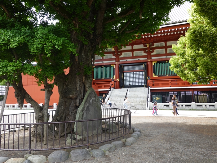 次に訪ねたのが「鳩ポッポの歌碑」。昭和37年(1962)に作詞の舞台となった浅草寺本堂の西側に建立された。童謡「鳩ポッポ」は、作詞家である東くめ女史が、浅草寺の境内にて鳩と戯れている子供たちをみてこの歌詞を書き、滝蓮太郎により作曲されたのだと。「鳩ポッポ👈️リンク の歌碑作曲 瀧 廉太郎 作詞 東 くめ鳩ポッポ 東くめ 八十六才はとポッポ はとポッポ ポッポッポと とんでこい御寺のやねから下りてこい えさをやるから皆たべよ食へてもすにかえらずに ポッポッポと鳴いて遊べ この詩は日本中の多くの人々に親しまれている日本の代表的な童謡の一つです東くめ女史が明治34年(1901)に観音さまの境内に於て鳩とたわむれている子供らの愛らしい姿をそのまま歌によまれたものであります 歌碑を建つるにあたりまして朝倉文夫先生から鳩並に題字を寄せられましたくめは作曲者滝廉太郎先生と同郷旧知の源いゆかりに依る洵にうるわしい御協賛でありました 鳩は平和の象徴です そのためにもこの碑は永久に保存いたしたいものであります 昭和37年(1962)11月3日 浅草古恭順識」 「♪ぽっぽっぽ、鳩ぽっぽ……」という歌い出しの童謡『鳩』とは異なる曲である。なお、そちらは作者不詳とされている と。鳩の姿も。「旧仁王門礎石」。 「旧仁王門礎石この大きな石(本小松石)は、慶安二年(一六四九)に第三代将軍・徳川家光公の寄進により建された、仁王門仁王門の礎石の一つである。惜しくも仁王門は、昭和二十年(一九四五)の東京大空襲で焼失してしまったが、同三十九年(一九六四)に宝蔵門として再建された。 金龍山 浅草寺」 そして「お水舎(おみずや)」を参道側から。 廻り込んで。龍神像(沙竭羅龍王像)を横から。明治36年(1903)8月奉安、高村 光雲 作以前、本堂裏にあった噴水に安置されていた像である。仏法を守護する龍王の1人。龍や龍神は、水をつかさどる神。天井には「墨絵の龍」(東 韶光 画)。昭和39年(1964)4月奉安。ズームして。廻り込んで。龍の吐水口(とすいこう)をズームして。先端には、ビニールホースが取り付けられていた。出口からは浄めの清水が。そして常香炉。常香炉とは、一般的に銅製や石製で、大きく装飾された器具。香炉自体には香を焚くための容器があり、その下には煙や灰がたまるための底部があります。香炉のデザインや装飾は寺院の伝統や信仰に基づいており、美しい彫刻や細部の装飾が施されているのだ。廻り込んで。香炉は、戦国時代末期(約400年前)に中国から伝わり、当初は祭祀や宗教儀式における香りを神に捧げるために使われていた。後に、仏教の伝来とともに寺院や仏教の修行者によって使用されるようになったと。長い時を経て「香炉の煙を体の悪いところにかけると治りが良くなる」という言い伝えが広まりそのような経緯から、今では参拝者が香炉の周りに集まるようになった。香炉の周りで人々をしばらく観察していると、頭に煙を当てる人が沢山いることに気がつく。頭に煙をかけると「頭をよくする、賢くなる」という言い伝えがあるそうで、頭に煙をたくさんかける参拝客が大勢いるんだとか。浅草寺は日本の伝統的な寺院文化を体験するのに最適な場所であり、インバウンドにとって必見のスポットなのである。この日は、早朝のため、人も煙も少なかった。「本堂」正面を見る。 巨大な「天水桶」が右側に。昭和33年10月に「魚がし」の講で奉納されたもので、何回か修理を重ねて、今日に至っている。もう半世紀以上前のものと。正面から見ると、いたるところに「丸魚がし」と「魚市場」の印型が表現されていた。装飾的な意味合いが強く、実用品では無くなっているようだ。正面の「魚がし」は、築地の「浜のや」、小林繁三氏の書で、提燈屋さんらしい江戸文字が書かれているのであった。波柄の青海波(せいがいは)の模様が描かれ、金の装飾もあしらわれた豪華な「天水桶」。 左隣にも。製作は鋳物産地として有名な東京近郊の埼玉県川口市の鋳物師 と。横から五重塔を背景に。「志ん橋」と書かれた大提灯の先に本堂の扁額「観音堂」。 階段を上がり、隅から「お水舎」方向を振り返る。 大提灯を横から。「卍」の文字が。 「本堂」内の「お札申込所」。 「本堂(観音堂)昭和三十三年、全国ご信徒のお力添えにより再建。お堂は南に面し、正面に懸かる「志ん橋」と書かれた大提灯は、東京新橋組合から奉納されたもの。外陣には、天上中央に川端龍子画の「龍の図」が、左右には堂本印象画の「天人の図」が掲げられ、正面には深見玄岱筆「施無畏」額が懸かる。内陣には、中央の御宮殿内に、ご本尊聖観音菩薩さま、慈覚大師円仁作のご秘仏お前立ちご本尊聖観世音菩薩様が奉安されている。また、御宮殿の正面左に梵天・右に帝釈天の二天が、内陣左奥に愛染明王、右奥に不動明王が祀られる。御本尊 聖観世音菩薩 観音さまは、人々の苦しみを見てはその苦しみを除き、願いを聞いては楽を与えてくださいます。特に浅草寺ご