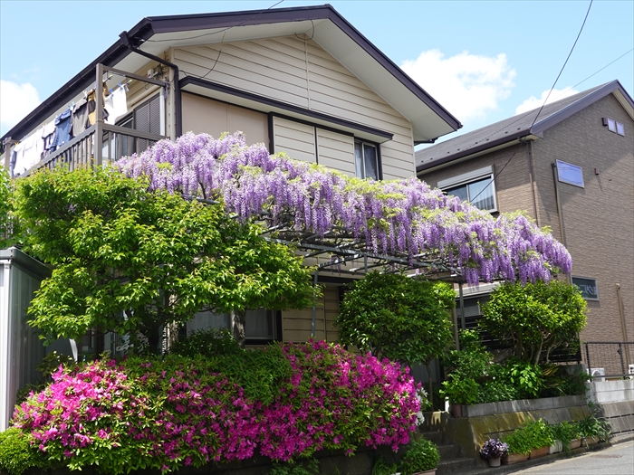 この日は5月1日(木)11時前、友人宅を尋ねるために小田急線の地元の駅に徒歩で向かう。駅前の民家の庭には紫色の藤の花が見事に開花中。玄関近くに、この家にお住まいの方がいらっしゃったので、カメラ撮影、ブログアップの許可をいただきました。藤(フジ)の花は私が住む市の「市の花」(昭和45年10月1日制定)になっているのだ。市内の公園には多くの藤棚があり、4〜5月には長い房に紫色の花を咲かせ、夏には日陰を作り私たちに憩いの場を提供してくれるのだ。単管パイプで出来た藤棚には見事な薄紫のフジの花が。フジの花の名前の由来は諸説ありますが、一般的には「吹き散る」がなまって名づけられたと言われています。また、古くから日本ではフジの姿が振袖の女性に例えられ、優しさや穏やかさを象徴する花として親しまれてきました。フジの英名は「Japanese Wisteria(ジャパニーズ・ウィステリア)」です。フジが日本の固有種であることから「Japanese」が英名に含まれています。「Wisteria」は、フジの研究科家としても活動していたアメリカの解剖学者「Caspar Wistar(カスパール・ウィスター)」の名前にちなんでつけられた とのこと。この家のご主人が手入れをされているのであろうか?巨大なクマバチも訪花中。そして白の藤(フジ)の花も。chatGPTに藤(フジ)の花の美しさを詠んでもらいました。一、薄紫の藤に寄せて風そよぐ 春の夕暮 藤の花 夢のほつれを 空にたらして──そよ風に揺れる薄紫の花は、まるで忘れかけた夢の糸。夕暮れの空に、 ひそやかにほどけていきます。二、白藤の静けさしろたへの 藤はしづけく 咲きにけり 水面に映る 月のごとくも ──白き藤は静かに咲き、その姿はまるで水面に浮かぶ月。 言葉を持たぬ美が、そこに息づいています。 ・・・つづく・・・