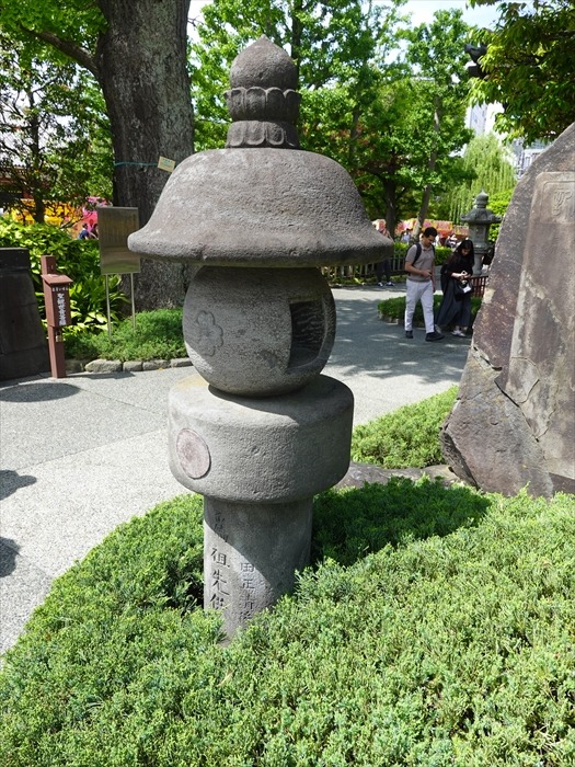 「六地蔵石燈籠」。 「東京都指定旧跡六地蔵石燈籠所在地 台東区浅草ニの三の一 浅草寺内仮指定 大正一三年ニ月五日指定 昭和三〇年三月ニ八日」 この石灯籠はかつて元花川戸町にあったものが、明治ニ三年(一八九〇)にあったものが現在地に移転されたものです。高さ約二三五センチメートル余り、龕部(がんぶ)六面に地蔵を彫りつけてあります。石燈籠と呼ばれていますが、「火袋(灯明部)」はありません。詳細は不明ですが、伝承では久安二年(一一四六)、久安六年(一一七〇)あるいは応安元年(一三六八)建立ともいわれます。現在では風化や火災の影響により、竿石に刻まれた文字などの判読は困難です。多くの文献に取り上げられている燈籠ですが、「江戸名所図会」などでもすでに印刻の判読が困難であったようです。そのため、都内でも古い時代の制作のものと考えられます。 平成二四年三月 建設 東京都教育委員会※久安六年は1150年である。「銅造観音菩薩坐像」 「銅造観音菩薩坐像台東区浅草二丁目三番一号 浅草寺本像は銅製、鋳造、鍍金で、大きさは総高が一六九・五センチメートル、像高は九九・五センチメートルである。本像は享保五年(一七二〇)に尾張国知多郡北方村(愛知県美浜町)出身で諸国を遊行した廻国聖、孝山義道が発願し、神田の鋳物師、小沼播磨守藤原長政が制作した。なお造立に際しては、近在の人々はもちろん、遠隔地からも多くの寄進を受け、その寄進者名が刻まれた。また本像の蓮華座は、元禄十五年(一七〇二)造立の阿弥陀三尊像の脇侍(勢至菩薩)のものとして、小伝馬町三丁目の鋳物師、宇田川善兵衛が制作したものであるが、後に本像の蓮華座へ転用された(勢至菩薩像は失われている)。本観音菩薩坐像を制作した小沼播磨守藤原長政は、江戸時代前期に活躍した鋳物師であるが作例は少なく、本像は長政の作例として新たに確認されたものである。江戸時代の鋳物師を考える上で基準となる作例のひとつであり、江戸鋳物師の作風を伝えるものとして貴重な遺品である。また、像や台座に刻まれた銘文は、江戸時代前期の信仰、宗教活動を知る上で貴重な資料である。平成二十五年三月に台東区有形文化財(彫刻)として台東区区民文化財台帳に登載された。平成二十八年三月 台東区教育委員会」 「一言(ひとこと)不動尊」。 「一言不動尊怒りのお姿をした不動明王さまは、そのお姿をして教化し難い者を導き、その力でわれわれの迷いの心を打ち切ってくださる仏さま。この一言不動尊は、何か願い事を一つに限って祈願すると、その願いがかなうとされ、古来より霊験が著しいといわれている。 享保十年(一七二五)造立。 金龍山 浅草寺」 扁額「不動堂」 「一言不動尊」を格子から覗いて。 「影向堂」を振り返って。 「佛頂尊勝陀羅尼碑」。 「仏頂尊勝陀羅尼「仏頂尊勝陀羅尼」とは、唱える人に息災延命などのご利益を授けるとされる、占くから信奉されてきた尊いお経である。碑の正面上部には「仏頂尊勝陀羅尼碑」と題字が、その下に梵字で陀羅尼が刻まれている。背面には漢字で陀羅尼の功徳について、末尾には造立年代である元治元年(一八六四)と製作者の名を見ることができる。この碑を奉納した海如(一八三七~七三)は、奈良の長谷寺などで修業した真言宗の僧侶である。碑の背面に「浅草大悲閣の下に建てた」旨が記され、当時天台宗であった浅草寺に碑を建立した経緯は不明であるが、当寺が宗派を超えて信仰されていたことを物語る。 金龍山 浅草寺」 「金龍権現」手前の石碑は「金翠翁の句碑」と。以下 ネットから 「寸法:総高165.0、幅45.2、奥行44.0形態:角柱型【正面】花の世へ 知らず生れて 又知らず 金翠翁【右面】露や霜 身こそあられぬ 雪の果【左面】かきり有る 人限りなき 月見かな【背面】家父吉村氏名達榮其先勢州大口邑人因稱大口始祖榮廣出勢來于東都而創産業千束村即今御蔵前也後與 官俸事至今五世百三十餘年祖父空翠自少小好俳歌方其時紫野祇空獨卓然斯道世人不堪景慕于今拝祇敬靈神盖尊稱之也遊其門者最多矣空翠亦師事之其伎益進家父幼而頴悟毎從祖父所好未嘗教之而口能成俳句八歳見祇空祇空愛其才名之以金翠俳道乃從祖父傳焉産業之餘嗜千宗易古流之茶事常會風雅友又興閑祠相得彈琴一曲獨樂恬靜云家父齡已六十二令余繼家事自稱翠翁既隱于金龍山下花川戸其居曰花川齋又號萬春庵便欲多年所好俳歌傳于不朽而自撰雪月花之三詠焉今茲刻石建于大悲閣西淡島神祠池上松樹之下蓋家父歳月尊信觀音大士故也使余記其事謹述其始末爾于時天明六年丙午冬十一月吉辰芳村達庵撰并毫《備考》金翠は、浅草天王町の札差大口屋八兵衛。父空翠の影響を受けて俳諧を好み、金翠と号した。また、歌舞伎・茶道にも通じたが、とくに同業札差とともに華美を究めた吉原通いを続けた。かれらは「十八代通」と呼ばれ、その大尽ぶりは『十八大通 一名御蔵前馬鹿物語』等の諸書に記されている。金翠は、本碑造立当時(天明6年、1786)62歳。家業を子息