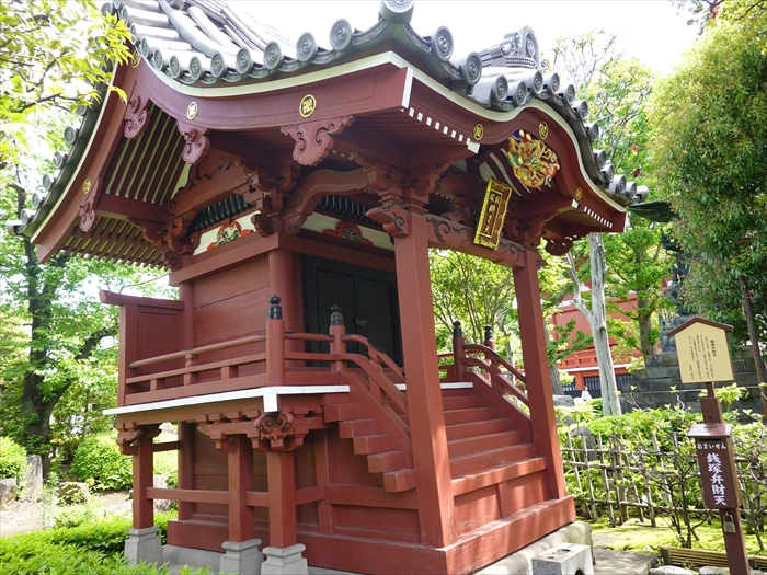 「銭塚地蔵堂」を後にして、南に進むと右側にあったのが「花やしき通り」入口。 「花やしき通り」を見る。直進して進むとその先左手にあったのが「浅草寺六角堂」。「浅草寺」境内に残る一番古い建物であると。本堂の北西、影向堂(ようごうどう)のエリアにひっそりとある「六角堂」。手前に「都重宝 淺草寺六角堂」碑。 「都重宝 淺草寺六角堂」に近づいて。扁額「日限地蔵尊」。 「東京都指定有形文化財(建造物)浅草寺六角堂所在地 台東区浅草ニ丁目三番一号指定 昭和二十七年十一月三日六角堂は「浅草寺誌」(文化十年編)に元和4年(1618)の建立とあり、江戸時代初期の建立と考えられ、浅草寺内で最古の遺構である。木造で単層の六角造り瓦(かわら)ぶき形式で、建物中央の直径は1.82mあり、一面の柱真々は0.91mである。建物の基礎は、六角形状に廻(まわ)した土台を布石の基礎で支え、その下部に11段の石積みをした1.5m余りの井戸上の穴が掘られている。六角堂という特異な形式であり、都内においては遺例の少ない建造物で、貴重な文化財である。もとは東方21.8mの場所{現・影向堂(ようごうどう)の南基壇上に元位置の表示あり}に建っていたが、平成6年(1994)10月境内整備のためにここに移された。※東京都文化財保護条例(昭和51年(1976)3月31日改正)により文化財の指定種別を都重宝から東京都指定有形文化財に変更したので、石造標識については、このように読み替えてください。 平成8年(1996)3月25日 東京都教育委員会」 「日限(ひぎり)地蔵尊六角堂のご本尊。地蔵菩薩さまは、慈悲のお心で、この娑婆世界だけでなく地獄や餓鬼道にもおもむき、衆生を救われる仏さま。特にこの日限地蔵尊は、何かのお願い事に対し、日数を定めて祈願すれば、古来より霊験があるとされる。造立年代は不明。木造。 金龍山浅草寺」 浅草寺六角堂は、『浅草寺誌』(文化10年編)に、元和4年(1618)に掘った井戸の上に建っていることを示す記述があり、さらには古い建築様式も採用されていることから浅草寺内に現存する最古の建造物と考えられます。実際、建物の底部は六角形状に廻した木製土台と基礎石で支えられ、更に、その下部に11 段の石積みをした深さ1.5m余りの井戸状の穴が堀られています。建物は、木造、桟瓦葺、朱塗りの六角円堂で、建物中央の直径は1.82m、一面の柱間は0.91m、都内ではあまり見かけない特異な形式の建造物です。屋根を支える垂木は、建物の中心から傘の骨のように放射状に広がる「扇垂木おうぎたるき」という形式で、桁の木組みも六角形に組むため、細工も難しく、大工の腕の 見せ所の一つです。反対側にあったのが「三峰神社」。 「三峯社三峯神社とは、秩父の森厳な聖地に社殿を構える古社である。天台修験の関東総本山とされ、殊に江戸時代には「三峯講」が各地に設けられ、盛んに参詣された。文化一〇年(一八一三)に編纂された『浅草寺志』をひもとくと、境内各所に様々な神社が勧請され三峯社も弁天山に建されていたことがわかる(戦災により焼失も再建)。本社は三峯に寄せる敬虔な信心とともに、明治初年の神仏分離令以前の信仰の様子を現在に伝えているのである。 金龍山 浅草寺」 その先、東・右側にあったのが「浅草寺 影向堂(ようごうどう)」。 本堂の北西に建つ、寄棟造りの堂宇が影向堂である。現在の影向堂は、平成6年(1994)に浅草寺中興開山慈覚大師円仁さまのご生誕1200年を記念して建立された。影向とは、神仏が姿かたちとなって現れることである。浅草寺では、観世音菩薩のお説法やご活躍に不断に協力されている仏さまを「影向衆」と呼び、影向堂に生れ年(干支)ごとの守り本尊八体(影向衆)を祀る。堂内は内陣と外陣に分かれ、内陣の須弥壇中央には聖観世音菩薩を祀り、その左右に千手観音、虚空蔵菩薩、文殊菩薩、普賢菩薩、勢至菩薩、大日如来、不動明王、阿弥陀如来を祀る。また、外陣には浅草名所七福神の大黒天を祀っている。影向堂は当山の朱印所であり、参拝証としてご本尊の聖観世音菩薩と大黒天のご朱印をお授けしている。境域には、元和4年(1618)に架設された石橋、青銅製の阿弥陀如来(元禄6年=1693)、宝篋印塔(宝暦11年=1761)など古い文物が多く存在する。「生れ年十二支本尊 影向堂」碑。 「影向堂影向堂はもと本堂南東にあったものを、平成六年に浅草寺中興開山慈覚大師円仁さまのご生誕千ニ百年を記念して、現在地に再建されたもので、観音さまのお説法やご活躍に不断に讃嘆協力されている仏さま方「影向衆(ようごうしゅう)」をおまつりしているお堂である。堂内には、中央に聖観世音菩薩さま、その左右に十ニ支に応じた生まれ年の守り本尊さま八体がおまつりされている。お堂の上、棟飾りには、火伏せの咒い(まじない)とされる金箔押しの鴟尾を置く。鴟尾を取り付ける際は不思議と雨を呼ぶといわれており、平成六年夏の建立時も記録的な日照りであったが、鴟尾を取り付けると突如として雨が降り、人々を感動させた。 金龍山浅草