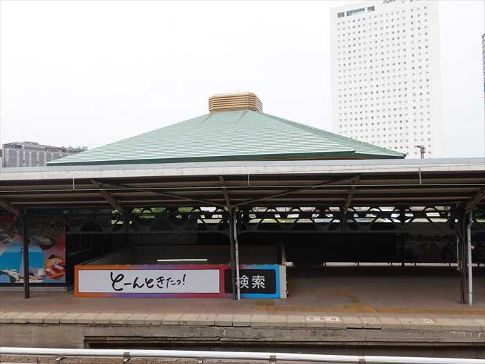この日は5月23日(金)、高校時代の3年のクラス仲間4人で大相撲・五月場所の13日目の観戦に両国国技館に行って来ました。大相撲の本場所の観戦は人生初体験、子供の頃地方巡業場所を父と見に行った記憶があるが。13時前にJR両国駅ホームから両国国技館を見る。両国駅ホームから「ちゃんこ 江戸沢 両国総本店別館」の看板を見る。 両国駅から徒歩1分、「相撲茶屋ちゃんこ 江戸沢総本山別館」の化粧廻しの看板。ちゃんこ江戸沢は東京以外にもあるようですが、創業は40以上年前。立浪部屋の元力士、江戸沢関が怪我で引退して、四股名を屋号にして開店した と。「JR東日本」の看板「とーんときたっ!北総」の看板。「とーんときたっ」は江戸弁で「惚れた」という意味。「胸が高鳴る、心が躍る、江戸体験がここから始まります。春風に誘われて、ときめきの旅へ。」 と。東京スカイツリーがビルの間から。両国駅西口に出る。「磯丸水産 両国西口店」の看板。 「目の前で焼ける楽しさ!名物磯丸焼き!水槽から引き揚げたばかりの活貝や、一番人気の蟹味噌甲羅焼を目の前で焼きながら楽しめます。新鮮なお刺身や一品料理もご用意しており、ランチも充実した女性のお客様にも人気のお店です。」 近づいて。名物の「蟹味噌甲羅焼」と。「江戸東京博物館」👈️リンク は「休館中」と。「江戸東京博物館」は大規模改修工事のため、2022年4月1日~2026年春(予定)まで全館休館とのこと。そして「両国駅」西口へ。 そして両国国技館に向かって進む。本場所に向かって進む若い力士の姿が。 「大相撲」関連雑誌の売店。 若手力士の姿を。国技館前の、「出待ち入り待ちの」人の群れ。 次々と力士が現れる。ここが「力士」の本場所入口。 「北斎漫画」のプレート。 「北斉『北斎漫画』(部分)世界的に有名な絵手本で、海外では「ホクサイ・スケッチ」として親しまれています。全十五卅、総図数は約三千九百図にのぼり、人間や自然、神仏妖怪など、ありとあらゆるものが描かれていて、「絵の百科事典」と呼ぶにふさわしい内容です。 令和ニ年三月 墨田区」 「両国国技館」の「櫓」 蔵前の頃から高さは5丈3尺といわれていて、その高さはここでも変わらず、約16m。 底面は一辺3mほどの正方形で、これが垂直に伸びている。櫓のてっぺん、太鼓を打つ場所が2.1m四方しかない。 ここに呼び出しが2人入るのだから、狭い狭い。平成7年5月からこの鉄骨製の櫓が使われている。 それまでは檜を80本くらい使って、それぞれを縄で結わえて築いていたのだ。今でも地方場所ではそうしている。 だから櫓には「攀じ登る」という形になっていた。ここ両国のはエレベーターがついている。鉄骨製の櫓は戦前の両国国技館にもあった。 昭和12年1月、国技館のわきに相撲協会の事務所ができたとき、その屋上に設けられたと。関脇・大栄翔大関・琴桜 の「のぼり旗」が手前に。相撲のぼり旗のサイズは、高さが5.4m、幅は70cm〜90cmほど。店頭などで一般的に使用されるのぼり旗のサイズ(高さ1.8m)と比較すると、3倍の高さ。相撲のぼり旗は竹棒とよばれる竹で作られたポールを使って立てられていた。なお、相撲のぼり旗の高さは設置する場所の状況に合わせ臨機応変に調整してると。たとえば、設置場所に電柱などの障害物がある場合は、3m程度の高さに変更されることもあるのだと。こちらは大関:大の里横綱:豊昇龍 の「のぼり旗」 「公益財団法人日本相撲協会「相撲競技観戦契約約款」に基づく『大相撲観戦時のお願い』 催事を安全かっ快適にお楽しみいただくため、ご来場される皆様に以下のようなご理解と ご協力をお願いいたします。《入場をお断りする方》・暴力団やこれに類する反社会的勢力団体所属者及びこれらと密接な関係を有する者・公益財団法人日本相撲協会「協会の社会的責任に関する規定」に定められた属性要件または 行為要件に該当する者・物品等の販売目的で入場する者・正規の入場券を提示しない者・著しく酒気を帯びた者・その他公益財団法人日本相撲協会が入場拒否を相当と判断した者《国技館内への持ち込みをお断りしているもの(持ち込み禁止物)》・銃砲刀剣類、花火、爆竹、劇薬物、その他危険物・他のお客様に迷惑を及ぼすおそれのあるもの(著しい悪臭を放つ物、大音響を発する物)等・座椅子等、その他座席仕様を変えてしまう物・ビン類、缶類、アイスポックス類・ペット(身体障害者補助大を除く)・自席範囲を超えるサイズの大きな手荷物、ただし、ベビーカーを除く。ベビーカーは客席 への持ち込み、ご使用はできませんので、所定の場所で、お預かりしております。・その他相撲競技の進行及び施設管理の運営の妨げとなる、または、他のお客様に迷惑を及 と判断する物品《お断りしている行為》・粗暴行為(暴言、脅迫、恐喝、威嚇、暴力行為)・施設・設備の破損、毀損・客席、場内その他への物投げ行為・立入禁止場所への立入行為・自由席等での過度な座席確保・所有する券面に記載