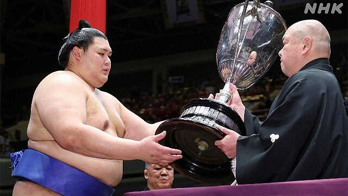 ●朝紅龍ー◯若隆景低く当たった若隆景即座右のぞかせて嫌っていなす朝紅龍の懐に飛び込み行司溜りひた走って2ケタ。◯高安ー●一山本ー山本の突っ張りにあてがい応じた高安が左半身に耐え抜いて右に開いて引き落として我慢勝ち。●欧勝馬ー◯霧島飛び込んで左のぞかせた霧島が右で小手巻く欧勝馬を左外掛けに崩しつつ正面追いやって10勝目。そして待ちに待った◯大の里ー●琴桜👈️リンク大相撲夏場所はこの日が13日目、初日から12連勝で綱とりに挑む大関 大の里は、勝てば優勝が決まる大一番で大関 琴櫻と対戦した。夏場所は22日の12日目、大の里が初日からの連勝を自身最長の「12」に伸ばした。横綱 豊昇龍が敗れたため2敗がいなくなり、星の差3つの3敗で豊昇龍など5人が追う展開となっていた。13日目のこの日、勝てば優勝が決まる大の里は琴櫻との大関どうしの一番に臨んだのであった。過去4勝4敗であったが、ここ2場所は大の里が勝っていた。多くの懸賞金の垂れ幕・懸賞幕が次々と。大相撲の懸賞金は、1本あたり7万円。そのうち1万円が日本相撲協会への手数料となり、残りの6万円が勝った力士の取り分となるとのこと。懸賞金7万円のうち、1万円は日本相撲協会の事務経費(取り組み表への掲載費、会場内の懸賞提供アナウンス費及びその際の企業・団体名含め15字以内のキャッチコピー費)として、5万円は納税充当金として日本相撲協会が獲得者本人名義の預り金として天引きするので、勝利力士は勝ち名乗りに際し懸賞1本当たり手取りで現金1万円を受け取る。この金額配分は2025年(令和7年)5月場所より適用されるもので、従来は納税充当金3万円、現金手取り3万円であったが、セキュリティ面への配慮や担当者の負担軽減などの理由から変更されたとのこと。体当たりの大の里が琴櫻ののど輪はねのけ右のぞかせて上手取れずもかまわず西に走ってひと腰落として寄り切って磐石13勝目、2場所連続4度目の優勝決めた。13日目の優勝は白鵬以来10年ぶり。大の里は大関・琴櫻と対戦し、立ち合い、両腕を固めて当たっていくと、そのまま得意の右を差して左も使いながら一気に攻めて、「寄り切り」で勝って13勝目を上げ、千秋楽を待たずに4回目の優勝を果たした。大の里は、大関として2場所連続の優勝となった。横綱審議委員会には横綱に推薦する条件として「大関で2場所連続優勝か、これに準ずる成績」という内規があり、横綱審議委員会が設置されて以降2場所連続優勝した力士が横綱に昇進できなかった例が無いことから、大の里は場所後の横綱昇進に大きく前進したのであった。13日目に優勝が決まるのは平成27年初場所の横綱・白鵬以来10年ぶり と。大の里は今場所、初日から圧倒的な馬力で相手を寄せつけず白星を重ねた。持ち味の右を差しての相撲もありましたが、1メートル92センチ、191キロの大きな体を生かして押されても下がらずに前に攻め続ける圧倒的な圧力が際立ったのであった。そして、初日から土つかずの13連勝として入門からわずか2年余りで、横綱昇進に大きく近づく大関としての2場所連続の優勝を果たしのであった。勝ち名乗りを受ける大の里。分厚い懸賞金を手に。優勝後のインタビュー👈️リンクに答える大の里大の里は取組のあとの支度部屋ではいつものように表情を変えず、淡々と取材に応じ「きょう勝ったら優勝は考えすぎてもよくないし、場所も終わっていないので、13日目のこの一番に集中していた。こんなに早く決まるのは予想していなかったのでうれしい」と話した。その上で、今場所ここまでについて「落ち着いてのびのびと何も考えることなく思い切りいけたのでよかった」と振り返った。そして「去年の秋場所の反省もあって14日目に優勝を決めたあと千秋楽でふがいない相撲で負けてしまったので、あと2日大事にして星を伸ばしたい」と残りの2日に向けた意気込みを示した。また、横綱昇進に大きく前進したことを問われると「まだ場所が終わっていないので残り2日間を頑張って、また場所後にいい報告が聞けるよう頑張りたい」と話した。 ・・・もどる・・・ ・・・つづく・・・