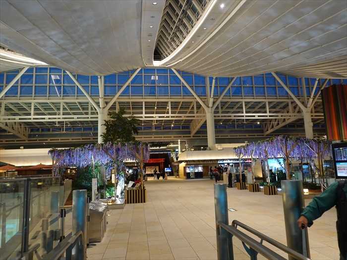 【海外旅行 ブログリスト】👈リンクチェックインを完了し時計を見ると18:56。搭乗開始時間20:50まで2時間強あったのでエスカレーターで4Fに上がる。4Fに上がると両側の藤棚が迎えてくれた。藤棚は造花のようであったが。藤の花(フジ)は、日本原産の美しいつる性植物で、春に長い花穂を垂れ下げて咲く姿が特徴。藤の花は、古くから日本人に親しまれ、万葉集にも歌われてる。藤の花の見頃は、4月中旬から5月上旬で、特にゴールデンウィークの頃に関東地方では散り始めることが多い。藤の花は、藤棚として観賞されることが多く、全国各地に名所があるのだ。4F正面には赤の「江戸舞台」が。神田明神の色彩をイメージした赤い柱が特徴。舞台中央に「洛中洛外図屏風(舟木本)(複製)」。岩佐又兵衛筆 江戸時代・17世紀 紙本金地着色各162.7×342.4 6曲1双 国宝。 「洛中洛外図屏風(舟木本)(複製)」。ネットから。「江戸時代の京都の中心部を、南から挑めた風景が描かれた作品です。右下にむかって斜めに流れる川は京都の東を南北に流れる鴨川で、鴨川より西(画面左)が洛中(京都の市街)、東(画面右)が洛外(郊外)です。この作品は、老若男女およそ258人の人々が暮らし、遊ぶさまが生き生きと描かれています。屏風の中央から少し左手にかかっている大きな橋(五条大橋)では、お花見の帰りに浮かれて騒いでいる集団が橋を渡っています。先頭には扇や桜の技を持った人たちが踊っている様子が描かれ、最後尾には両脇を抱えられて酔いつぶれた男性の姿も見られます。この大騒ぎに驚き、橋の下の船頭は上を見上げています。そのほかにも遊んでいる子どもたちや、喧嘩をしている人など、一人ひとりの顔の表情が、見事にあらわされています。この絵の中には三十三間堂、清水寺、八坂神社など、今も京都で訪ねることのできる名所などが描かれています。東京・上野にある東京国立博物館は、屏風をはじめとする様々な文化財を広く公開しています。ひんぱんに展示替えを行うことで、訪れるたび違った内容の約3000件の文化財をご覧いただけます。日本の美術品は季節ごとのモチーフをあらわしたものも多くあり、文化財を通して日本の四季を楽しむことができます。上野周辺には、過去から今に続く様々な文化があります。現在の日本の文化とともに文化財を作り、使い受け継いできた過去の人々の思いも身近に感じていただければ幸いです。」 少し先へ行くと江戸の街並みを彷彿とさせる通りが現れた。「江戸小路」は現代の名匠が伝統の日本式工法を追求して再現した本物の「江戸の街並」。羽田空港から「新しい日本・東京」の魅力を発信するために、文化と伝統の技を伝える多くの店舗を厳選しているのだ と。江戸総鎮守・神田明神の色彩をイメージした赤い柱の「江戸舞台」を中心に構え「江戸櫓」がそびえる「江戸小路」。ここは、十八代目 中村勘三郎氏が監修した江戸時代の芝居小屋をはじめ、全て本物の無垢材を使い、手カンナ等で仕上げる従来の日本式工法で数寄屋建築の名匠・中村外二工務店が追求した江戸建築の巧みがあります。また、聚落土塀や江戸黒と呼ばれた黒漆喰壁など、本物の伝統と技の真髄が集められています と。看板中央の文字は「さる(流)わか(可)か(加)ん三良」と師匠から。 「江戸歌舞伎很元 猿若勘三郎座乃由来初代猿若勘三郎寛永元年甲子に年大江戸中橋の地にて歌舞伎興業の御免を蒙りたるは徳川家の御用船安宅丸の木遣音頭が功にて悉くも褒美に賜りたる金の幣と陣羽織は座の寶として相伝せり」振り返って。「おこのみ横丁」。羽田空港の第3ターミナル4階にある「おこのみ横丁」は、江戸小路の一角に位置し、様々な飲食店が集まるエリア。特に、お好み焼きや鉄板焼きなどの「お好み焼き」をメインとした店が複数軒並んでいた。「おにぎり こんが」店。握らないおにぎりが人気の店と。ここにも藤の花が。そして「はねだ日本橋」。吉野産の総檜(ひのき)造りで、幅・長さとも当時の日本橋のおよそ半分のサイズで復元されているとのこと。廻り込むと、「はねだ日本橋」への石段が。江戸幕府のはじまりとともに創架された日本橋。江戸の中心にある橋として、人々から愛されてきた橋。橋の横の壁面には、各名所の賑わう様子が描かれた「江戸図屏風」のレプリカが飾られていた。「旅立ちは 昔も今も 日本橋」と。 近づいて。「江戸図屏風」のレプリカを左に見ながら「はねだ日本橋」を歩く。壁面には、国立歴史民族博物館所蔵「江戸図屏風」より各名所を取り上げ、江戸の町の賑わう様子を陶板壁画にて表現。江戸時代初期の江戸市街地および近郊の景観を画題として、そのなかに江戸幕府第三将軍徳川家光の事蹟を描き込んだ、六曲一双の屏風。成立期江戸の景観を描いた数少ない史料のひとつ。「はねだ日本橋」上から3階出発ロビーを見る。「羽田 日本橋」 ~江戸の町の賑い~国立歴史民俗博物館所蔵「江戸図風」より各名所を取り上げ、江戸の町の賑わう