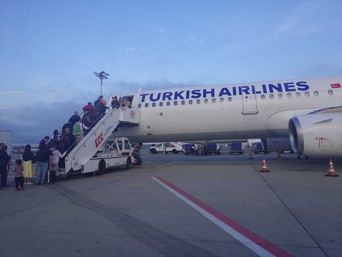 【海外旅行 ブログリスト】👈️リンクそして座席25Aに到着。時間は21:30。飛行機が動き出した。時間は予定時間から少し早い21:39。この日のFlightはB777-300。座席数 514席全長 73.9 m全幅 60.9 m全高 18.5 m巡航速度 890 km/h航続距離 3,800 km最大運用高度 13,100 m駐機場を離れる。そして離陸。時間は21:49。日本列島上空を西へと進む。若狭湾に出る。時間は22:29。韓国上空へと。23:06。韓国上空をソウル方向へ。23:18。そしてこの夜の最初の機内食。23:26。中国遼寧省南端の遼東半島に位置する大連沖の渤海湾を進む。23:48。莱州湾(らいしゅうわん)上空へ。00:7。莱州湾は、中国の山東半島北部にある渤海に面した湾。山東省の黄河河口から黄県の西方屺角までを指す。そして北上して北京上空方向へ。0:36。そして満腹の下、ウトウトと。中華人民共和国内モンゴル自治区に位置する包頭市の北を通過。1:35。そして暫しの爆睡。気がつくとタクラマカン砂漠上空を通過。時間は4:01。ブルルトカイ (布倫托海)の南側上空。中国、新疆(しんきょう)ウイグル自治区北部の県。中国語で福海(ふっかい)ともいう。イリ・カザフ自治州アルタイ地区に属し、アルタイ山脈の南、ジュンガル盆地北部、ウルングル河の沿岸にある。ウズベキスタン・タシケントの北側をカスピ海に向かって進む。トルクメニスタン北部、ウズベキスタンとの国境線上にある湖サリカミシュ湖上空を通過。6:55。カスピ海上空へと。7:18。イスタンブールまであと3時間。カスピ海上空。7:42。カスピ海は、ユーラシア大陸の中央アジアと東ヨーロッパの境界にある塩湖。沿岸国の領海問題が複雑に絡みあうため、海とされることも湖とされることもある。湖としては、世界最大の湖。そして2回目の機内食。時間は日本時間:8:18。トルコ時間2:18。そして「黒海」南岸上空へ。トルコ時間2:32。イスタンブールまで残り1000km。「黒海」は、ヨーロッパとアジアの間にある内海で、大西洋の縁海の一つである。マルマラ海を経てエーゲ海、地中海に繋がる。 バルカン半島、アナトリア半島、コーカサスと南ウクライナ・クリミア半島に囲まれており、ドナウ川、ドニエストル川、ドニエプル川などの東ヨーロッパの大河が注ぐ。黒海の北側沿岸にあるのが「ウクライナ」。 機内の画面にはメッカ(Mecca)の方向・距離が示されていた。メッカは、イスラム教最大の聖地であり、祈りを捧げるところである。ムスリム(イスラム教徒)は一日に5回決まった時刻になると、メッカの方向に向かって礼拝を行う。あらゆるムスリムにとって、同地への巡礼「ハッジ」は体力と財力が許す限り一生に一度は果たすべき義務である。メッカはほぼ南方1349マイル=2172km にあると。東京・羽田空港の時間 9:05イスタンブールの時間 3:05到着予定時間 4:22イスタンブールまで残り1:01、残り544km と。時間はトルコ時間3:21。イスタンブールの街並みの灯が見えて来た。時間は3:59。そしてイスタンブール空港上空を通過しマルマラ海方向に向かう。時間は4:01。そしてイスタンブール空港方向へ旋回。4:09。そしてイスタンブール空港へ着陸。時間は4:12。イスタンブール空港は、タクシム広場から約40km(渋滞なしだと車で45分)、旧市街のスルタンアフメット地区から約45km(渋滞なしで車で1時間)に位置。空港ビルを見る。イスタンブール空港での建設が進む新空港の管制塔。ネットから。管制塔の建築デザインは、歴史的にイスタンブールを象徴する花であるチューリップをモチーフとしつつ、提案者・ピニンファリーナがカーデザインで培ってきたダイナミックさとロマンチックさを融合したもの と。駐機場に向かう。そしてイスタンブール空港に到着。時間は4:17。羽田空港からのFlightルートをネットから。飛行時間約12:12。 ・・・もどる・・・ ・・・つづく・・・