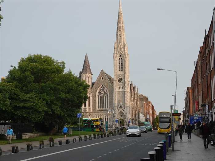 【海外旅行 ブログリスト】👈️リンクこの日はダブリン2日目・5月31日(土)、6時過ぎに起床。我が部屋の窓から、赤く染まった朝陽を見る。右に見えたのが長老派教会・Abbey Presbyterian Churchの尖塔。日の出直後の真っ赤な太陽をズームして。そして7時を過ぎ、一人で1時間ほどの早朝散歩に出る。再びホテル前から、朝の陽光を浴びたSt Mary's Chapel of Easeをズームして。この日も歩いてSt Mary's Chapel of Easeを訪ねた。周囲を一廻り。この「黒い教会」には不思議な伝説もあるのだと。教会のアーチの下を真夜中に三度歩くと、悪魔が現れる。このような都市伝説があるため、地元では心霊スポットとしても知られている側面がある と。ネオ・ゴシック様式で、尖塔やアーチ型の窓が特徴。「Mater Misericordiae H」と。 「Mater Misericordiae Hospital(マーテル・ミゼリコルディエ病院)」の案内板。その先には、巨木が道路の両側に。「PANTHER -A-L-A-R-M-」 とは? 「PANTHER -A-L-A-R-M-」は、ダブリン市内のセント・メアリーズ・プレイス(St Mary’s Place)にある旧教会「The Black Church(黒い教会)」の外壁に表示されている看板で、実は地元のセキュリティ会社のもの と。同社は侵入アラーム、CCTV、防火アラーム、アクセス制御などを提供しているのだ と。反対側に引き返して。窓には朝の陽光が。再び我がホテル前まで引き返して。「maldron HOTEL」。公園であった場所は再開発中。その先の赤レンガの建物はボクシングクラブ・St. Saviours Olympic Boxing Academy。ボクシングクラブ・St. Saviours Olympic Boxing Academy。近づいて。ホテル前まで引き返す。ホテル前の道グランビュー・ロウを東に進み、右折してグランビュー・レーンへ。教会の様な建物なので訪ねたがSt. Saviour’s Priory(セント・セイヴィア/救世主聖ドミニコ会修道院)であった。Saint Saviour's Priory, 9-11 Dorset Street Upper, Rotunda, Dublin 1, アイルランドSt. Saviour’s Priory(セント・セイヴィア/救世主聖ドミニコ会修道院) は、1224年に設立された歴史あるドミニコ会の修道院。こちらは、裏側のようであった。右手にあったのがPriory(修道院の)建物のようであった。表側に廻る。正面入口。1853年に建設が始まり、1861年にドミニコ会で献堂。アイルランドのゴシック復興様式を代表する教会で、設計は著名建築家J.J.マッカーシーによるもの 。ライムストーン外壁とポートランド石の装飾、ローズ窓、尖塔、細工の施されたバットレス(控え壁)などが特徴的 。「貧しく敬虔な市民のための教会」として建てられ、内部は中世大聖堂を思わせる柱列と高いアーチが印象的 。Priory(修道院)建物:教会の北側、1884年〜87年に建設。クワドラングル(中庭を囲む構成)を目指したが未完成 。複雑な外観、石装飾、十字架型飾り、ゴーゴイルなど、豊かなゴシック装飾が施され、通りに存在感を与える のであった。上空からの写真をGoogle MAPより。大きな中庭を有するカトリック教会。内部をネットから。先程は正面のステンドグラスを、北側の外から見ていたのであろう。そして次に訪ねたのが「Garden of Remembrance(追憶の庭・ガーデン・オブ・リメンブランス)」住所:Parnell Square E, Rotunda, Dublin 1, D01 A0F8 アイルランド「Garden of Remembrance(追憶の庭)」は、アイルランドの首都ダブリンにある国家記念公園で、アイルランド独立のために命を捧げたすべての人々を追悼するために造られた と。記念公園内のモニュメント、「Children of Lir・リルの子供たち」。オリバー・シェパード作の「Children of Lir(リルの子供たち)」は、アイルランドの神話に伝わる最も有名な伝承のひとつ。ケルト神話の「神々の書(Lebor Gabála Érenn)」に登場する物語で、「白鳥に変えられた4人の兄妹」の悲劇的な運命を描いた物語であるようだ。あらすじ(要約)1.リルの子どもたち ・リルは最初の妻との間に4人の子供を授かるが、妻は早くに亡くなる。 ・妻の妹アオイフェと再婚するが、アオイフェは子どもたちに嫉妬し、魔法で白鳥に 変えてしまう。2.呪いの内容 ・白鳥の姿のまま900年間を生きる運命: ・最初の300年:自分たちの故郷(Lough Derravaragh)で過ごす。 ・次の300年:北の寒く荒れた海(Sea of Moyle)で過ごす。 ・最後の300年:西の海(Irrus Domnann)で孤独に暮らす。3.解放のとき ・900年後、キリスト教がアイルランドに伝わる。 ・聖人(例:聖モイラン)の祈りと鐘の音によって、呪いが解ける。 ・子供たちは人間に戻るが、極度に老いており、そのまま息絶える。 ・聖人によってキリスト教の洗礼を受けてから、平穏に旅立ったとされる。そして昨日、ホテルの部屋からも見えた「長老派教会・Abbey Presbyterian Church」の尖塔が左手前方に。 近づいて。正面から。尖塔をズームして。さらに。時計は故障中!?内部の写真をネットから。 ・・・もどる・・・ ・・・つづく・・・