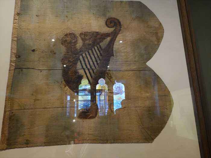 Flag 0f Ramillies・ラミイの旗1706年5月26日、ベルギーでラミリーズの戦いが起こりました。これはスペイン継承戦争における重要な戦いでした。この旗は元々、リムリック条約後にフランスに亡命したアイルランドの連隊、クレア竜騎兵隊のものでした。この条約は、長引いていたアイルランド戦争を終結させるために締結されました。クレア竜騎兵隊は、アイルランドを離れ、ヨーロッパ各地でカトリック国王のために戦った「ワイルド・グース(野生の雁)」の一員であり、最も有名なのはフランスにおけるアイルランド旅団での活躍です。この連隊はクレア子爵チャールズ・オブライエンによって率いられていました。クレア子爵は後に亡命し、1698年のボイン川の戦いで彼と彼の家族はすべての領地を失いました。斜めから。銃弾が残された可能性のあるラミリーズ旗。「Flag 0f Ramillieslt is said that this flag was captured by the lrish Brigade regiment at the Battle ofRamillies in 1706 and deposited for safekeeping with the nums at the abbey in Ypres.」【ラミイの旗この旗は、1706年のラミイの戦いでアイリッシュ旅団の連隊によって奪取され、イープルの修道院にいる修道女たちのもとに、安全に保管するため預けられたと言われています。】「The Irish Dames of YpresFounded in 1665 , the Benedictine menastery in YPRES, BELGIUM, provided an educationand religious community for Irish women at a time when strict anti-Catholic laws werein place in lreland.Lady Abbess Joseph Butler from Country Kilkenmy becamethe first Irish-born Abbess at Ypreswhen she was elected in August 1686. Following an invitation from King James Ⅱ toestablish a Royal Benedictine Abbey in Dublin in 1688,Lady Abbess Butler and some of her community came to Ireland but following the defeatof King James at the BATTLE OF THE BOYNE in 1690,they returned to YPRES,where theyremained for over 200 YEARS.【イープルの修道女たち(The Dames of Ypres)1665年に創設されたベルギー・イープルのベネディクト会修道院は、アイルランドで厳しい反カトリック法が施行されていた時代に、アイルランドの女性たちに教育と宗教的共同体を提供していました。キルケニー州出身のジョセフ・バトラー女修道院長は、1686年8月に選出され、イープル初のアイルランド人出身の院長となりました。1688年にはジェームズ2世の招きにより、ダブリンに王立ベネディクト会修道院を設立するため、バトラー女院長とその共同体の一部がアイルランドへ渡りました。しかし、1690年のボイン川の戦いでジェームズ王が敗北したため、彼女たちはイープルへ戻り、その後200年以上にわたりそこで活動を続けました。】「RE-BUILDING of KYLEMORE ABBEY (destroyed by fire in 1959)」 【カイルモア修道院の再建(1959年の火災で焼失)】メクティルド修道院長(1959年)の証言″The tower bell MELTED into THIN AIR…The leaded roof was no more;atairways,ironbedsteads hung off the remaining turrets,a sorry sight,but THANK GOD only GOODSand CHATTELS.No person was injured,all just suffering from shock"Mother Mechtilde, 1959.【鐘楼の鐘は 煙のように溶けて消え去りました…。鉛の屋根も跡形もなく、階段や鉄製のベッドが残った塔にぶら下がっていました。哀れな光景でしたが、ありがたいことに失われたのは 物品と家財だけ。人命は失われず、皆がただショックを受けているだけでした。」――メクティルド修道院長(1959年)】この展示室は、カイルモア修道院の歴史、使命、そしてベネディクト派修道女たちの精神を来訪者に伝えるための空間。中央のベンチも歴史的な意匠が施されており、修道院の厳粛で静謐な雰囲気を反映していた。「1921the RIGHTS and privileges of Ypres were transferred to KYlemore Abbey,making it the first Benedictine monastery established in IRELAND since the 1600s.」 【1921イープル修道院の権利と特権はカイルモア修道院に移され、これにより1600年代以来、アイルランドで初めて設立されたベネディクト会修道院となりました。】「John McCormack」 ジョン・フランシス・マコーマック伯爵(1884年6月14日 - 1945年9月16日)は、アイルランド出身の 抒情テノール歌手で、オペラやポピュラーソングの演奏で名高く、その発音と呼吸法で知られていた。彼は伯爵でもあった。マコーマックはアメリカに帰化した後、アイルランドに戻った。Our Mission "Our Mission as Benedictine women is to live in COMMUNITY sharing our liturgy andhosupitality with all,in a sprit of peace"【私たちの使命「私たちベネディクト会の女性の使命は、平和の精神のもとに、共同体として生活し、祈りの典礼とおもてなしをすべての人と分かち合うことです。」】「The Indian Princessesin the early 1930s,two Indian princesses attended Kylemore as boaders.The princesses were nieces of a Maharajya,who owned nearby Ballynahinch Castle for a time.」 【インドの王女たち1930年代初頭、2人のインドの王女が寄宿生としてカイルモア修道院に通っていました。彼女たちはマハラジャの姪であり、そのマハラジャは一時期、近隣のバリナヒンチ城(Ballynahinch Castle)を所有していました。】「ln the latter years of the 20th century necessary restoration work was carried out on the Gothic church,the walled garden,and the Abbey itself.The funds earned throughtourism 