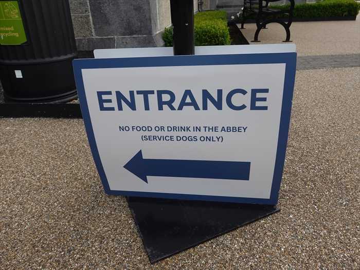 「ENTRANCENO FOOD OR DRINK IN THE ABBEY(SERVICE DOGS ONLY)」 【入口修道院内への飲食物の持ち込みは禁止です(介助犬のみ入場可)】入口は花崗岩のアーチが。Welcome to Kylemore Abbey.「Entering under the granite arch you are following in the footsteps of many generations and beginning Generation to Generation... Note the 0旧ash pit toyour left and the folly windows on the outer walls both exposed during recent renovations.」 【花崗岩のアーチの下をくぐると、あなたは幾世代もの人々の足跡をたどり、「世代から世代へ」という歩みを始めることになります。左手にある古い灰捨て場と、外壁の飾り窓にご注目ください。いずれも最近の改修工事で明らかになったものです。】「Reccent renovations revealed な砌/″れ00雇ル加revealedTHIS STRUCTURE, which dates back to when the CASTLE WAS BUILT in the 1860s.Although we cannot be sure Of its purpose,we believe it many have been an ASH PIT,where embers from all the fireplaces and ranges in the castle were placed.」 【最近の改修工事によって、この構造物が明らかになりました。それは1860年代にこの城が建てられた当時のものです。その用途ははっきりとは分かっていませんが、おそらく「灰捨て場(アッシュ・ピット)」であり、城内のすべての暖炉やレンジで使われた燃えかすがここに捨てられていたと考えられています。】飾り窓の表示。「Ora et Labora Pray and Work」【祈り、そして働け】「Welcome to Kylemore Abbey.From GENERATION to GENERATIONand throughout its history,this special place has been a home , a haven,a school and a sanctuary.」【カイルモア修道院へようこそ。「世代から世代へ」、そしてその長い歴史の中で、この特別な場所は、家庭であり、安息の地であり、学校であり、そして聖域でもありました。】「From GENERATION to GENERATION」 【世代から世代へ】「500s Saint Benedict500sSaint Benedict founded a monastery at Monte Cassino,Italy【500年代500年代、聖ベネディクトゥスがイタリアのモンテ・カッシーノに修道院を創設しました。】「1665 Founding of Benedictine monaster in Ypres, Belgium.」【1665年、ベルギーのイーペルにベネディクト会修道院が創設されました。】「Mitchell Henry 18674 September 1867Mitchell Henry begins construction of Kylemore Castle【ミッチェル・ヘンリー 1867年1867年9月4日、ミッチェル・ヘンリーがカイルモア城の建設を開始しました。】「1871Consturuction of Kylemore Castle completed」【1871年カイルモア城の建設が完了しました。】「Margaret Henry 18744 December 1874Death of MargaretHenry in Cairo, Egypt.【1874年12月4日マーガレット・ヘンリー、エジプト・カイロにて死去。】「21 September 1892Death of GeraldineHenry following an accident at nearbyDerryinver Bridge」【1892年9月21日ジェラルディン・ヘンリー、近くのデリーインヴァー橋での事故により死去。】「Manchesters 1903September 1903Kylemore sold the Duke and Duchess of Manchester」 【1903年9月カイルモアはマンチェスター公爵夫妻に売却されました。】「1914The Manchesters leave Kylemore」 【1914年マンチェスター公爵夫妻がカイルモアを去る】「1914 BenedictinesNovember 1914The Benedictines flee war-torn Belgium」 【1914年 ベネディクト会1914年11月ベネディクト会の修道女たちが戦火に覆われたベルギーから避難】「4 December 1920The Benedictines arrive at Kylemore」 【1920年12月4日ベネディクト会の修道女たちがカイルモアに到着】「Pupils 192311 September 1923Kylemore AbbeySchool is opened」 【生徒たち 1923年1923年9月11日カイルモア修道院学校が開校しました。】「Big Fire25 January 1959The Big Fire」 【大火災1959年1月25日大火発生】「April 1995Gothic Churchre- opened」【1995年4月ゴシック様式教会が再公開される】「August 2000Walled Gardensre-opened」【2000年8月ウォールド・ガーデン(囲い庭園)が再公開される】「June 2010Kylemore AbbeySchool closed」【2010年6月カイルモア修道院学校が閉校】「2013 BenedictinesNew MonasticChurch completed」 【2013年 ベネディクト会新しい修道院教会が完成】 「A special place 20192019 Foundation stone of new monastery laid」 【特別な場所 2019年2019年、新しい修道院の礎石が据えられる】Abbess Maura Oysten(1916-1940)とMitchell Henry(1826-1910)の姿が。修道院長 モーラ・オイスティン。「COMMIT your lifeto the Lord,trust in him and he will ACT. "Abbess Maura Oysten(1916-1940)」 【「あなたの人生を主にゆだねなさい。主を信頼しなさい。そうすれば、主は働かれるでしょう。」修道院長 モーラ・オイスティン(在任期間:1916年〜1940年)】「Guide to the Abbey Visitor ExperiennceFrom Generation...The Story of Kylemore Abbey」【修道院ビジター体験ガイド『世代から世代へ…カイルモア修道院の物語』】「①Welcome RoomWelcome to Kylemore Abbey. This room was once the outer kitchen and is where meatswere prepared for the Henry family, the Dukeand Duchess of Manchester and in later years the nuns and schoolgirls.The old kichen and butter making tables were used formany years in the Kylemore farmhouse. Here we begin to learn about the history and origins of Kylemore Abbey. The audio ⅵsual displays tell the story of Kylemore through the years.」【① ウェルカム・ルームカイルモア修道院へようこそ。この部屋はかつて「外台所」として使われており、ヘンリー家、マンチェスター公爵夫妻、そして後の時代には