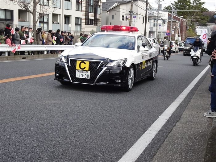 こちらの車両が規制解除の合図。『C』は「CLEAR」の『C』でしょうか。