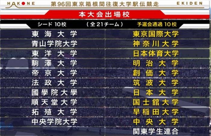 4位だった。5位以下は明大、帝京大、創価大、駒大、早大、拓大と続き、前回大会まで