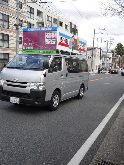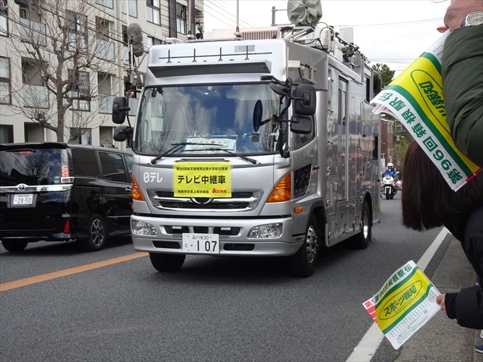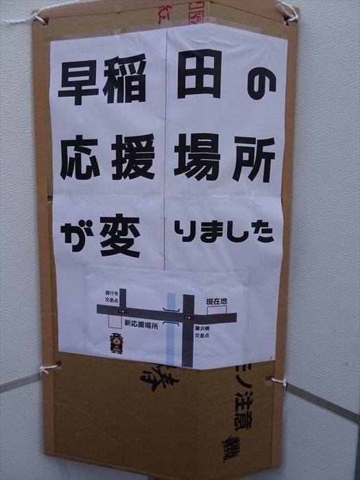 2日の往路は我が母校の応援場所での応援が常であったが、今年はその場所が工事中とのことで