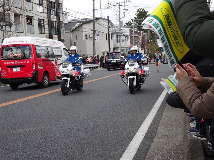 折しも1位となった東京国際大学 Y.ヴィンセント選手は134号線を爆走中。