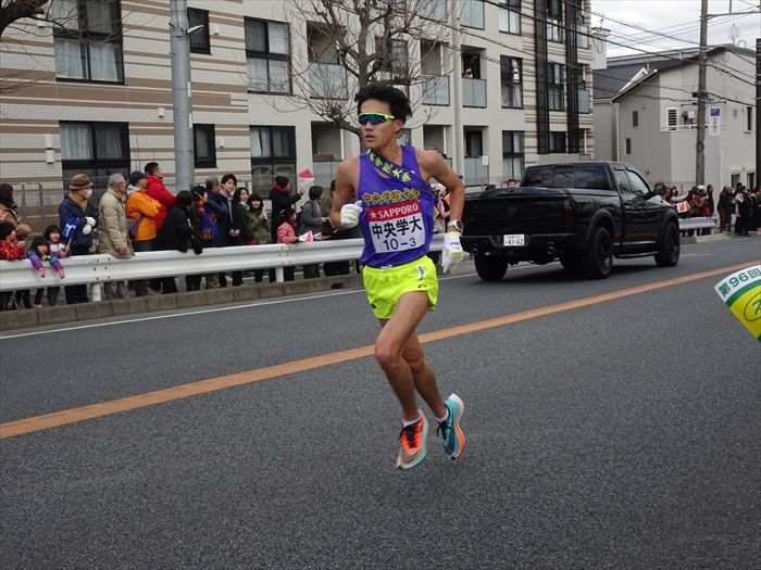 区間賞を獲得した昨年以上のペースで追い上げて3km付近で2位に浮上するも、先頭とは
