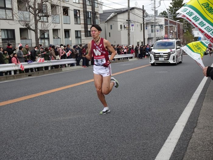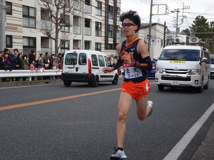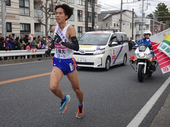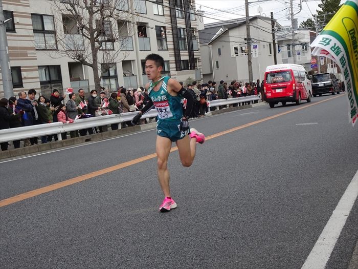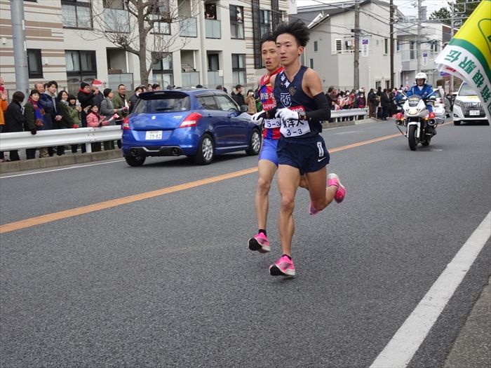 トップでたすきを受けた5区(20.8km)の飯田貴之(2年、千葉・八千代松陰)が