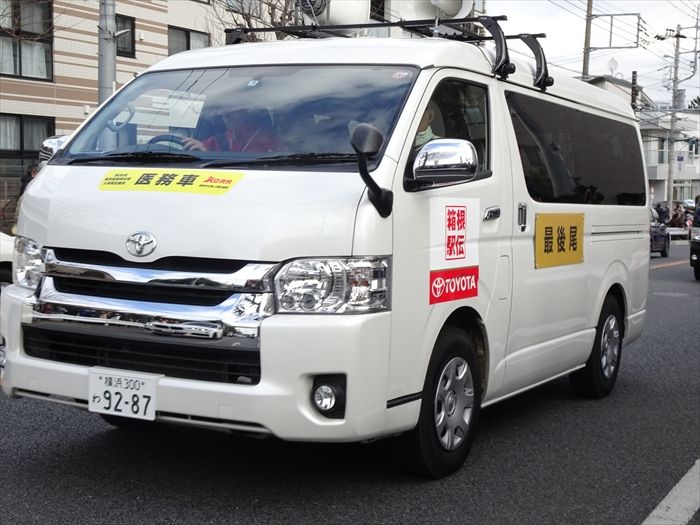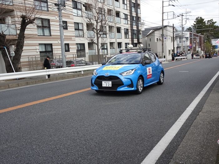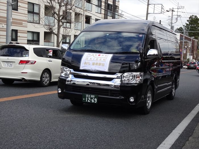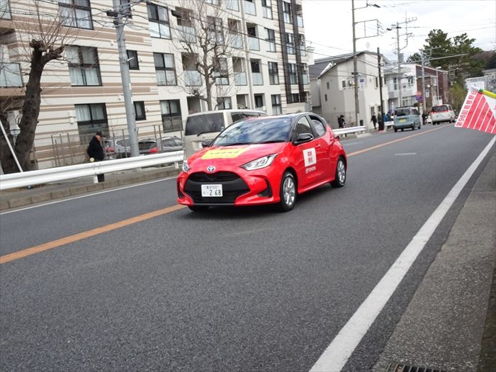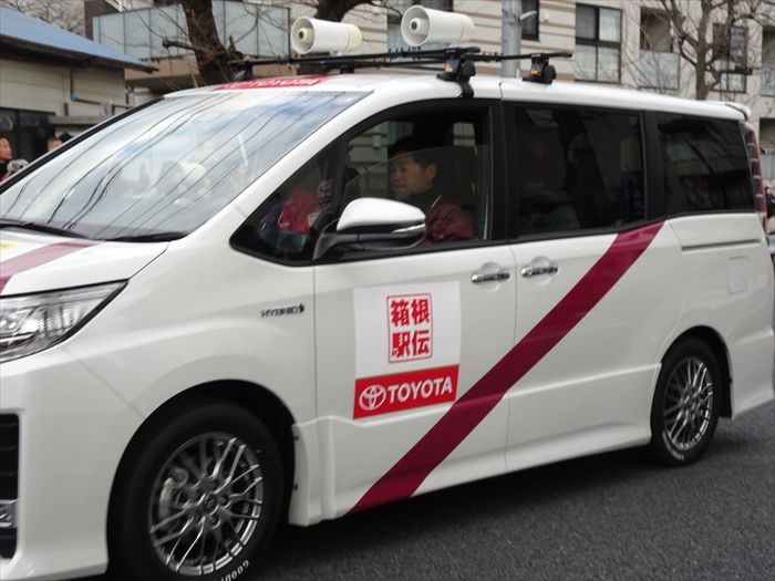 早稲田大学 伴走車には相楽 豊 駅伝監督が助手席に。