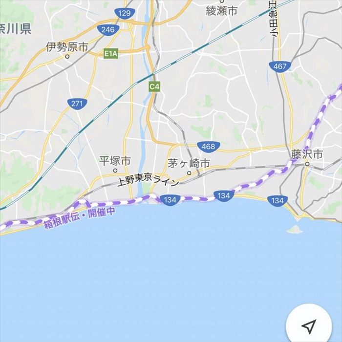 そして、出発前にIphoneでGoogle Mapsを見ていると、箱根駅伝のコースが