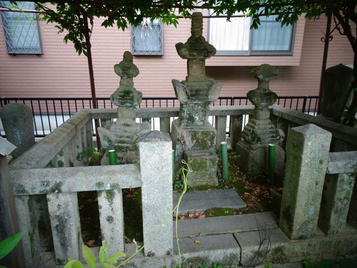 写真中央が浄瑠璃姫の宝篋印塔(ほうきょういんとう)で左右には侍女更科と乳母冷泉の
