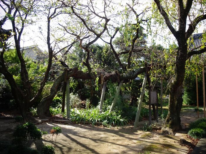 ヒガンザクラの一種エドヒガンの枝垂れ品である。かつては胸高囲2.4m、高さ