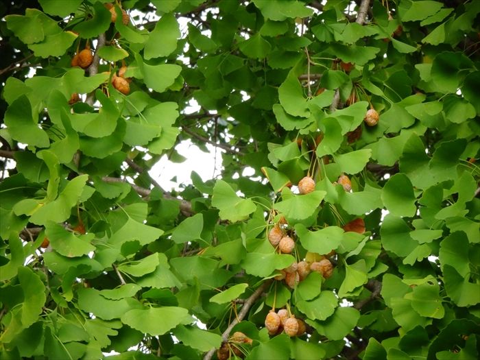 境内の銀杏の木にはギンナンがたわわに実っていた。