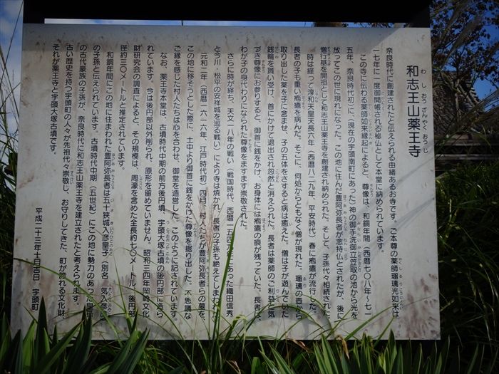 奈良時代に和志王山薬王寺を建立されたと考えられます。古い歴史を持つ宇頭町の人々が