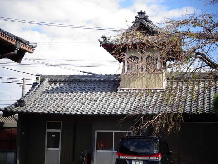 『太鼓楼』の重厚な見事な屋根を境内から。