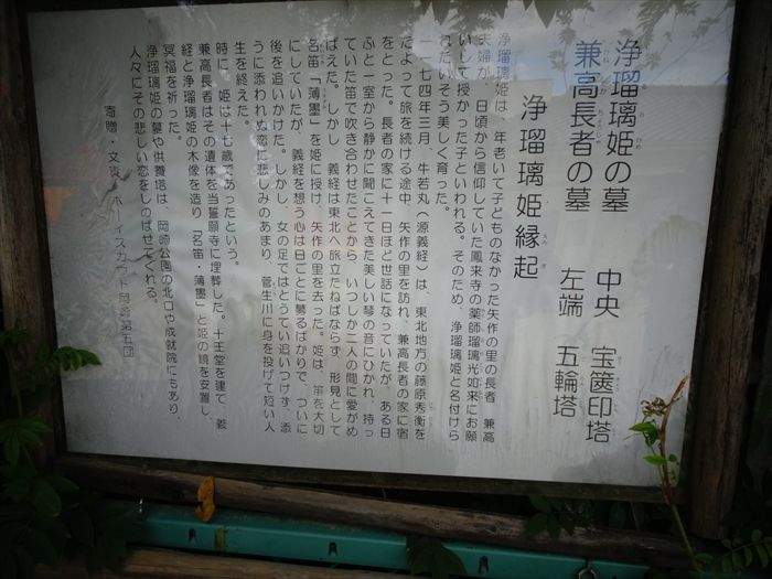 浄瑠璃姫の墓や供養塔は、岡崎公園の北口や成就院にもあり人々にその悲しい