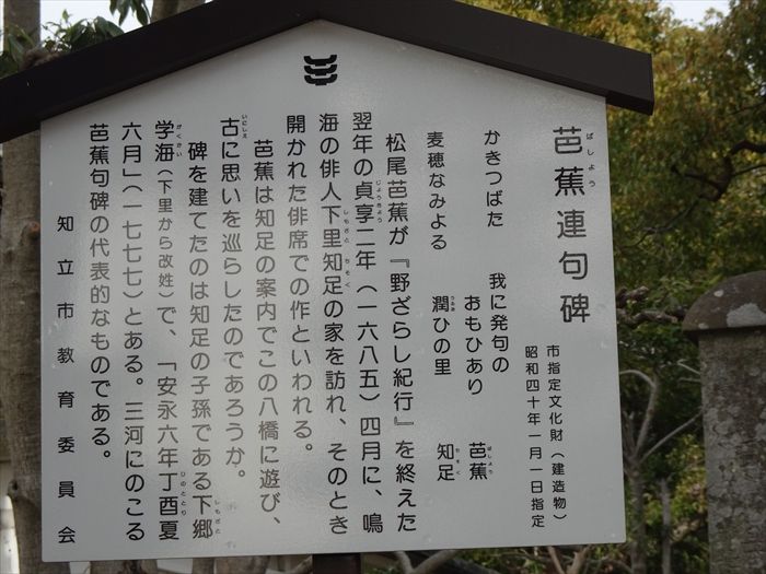 芭蕉は知足の案内でこの八橋に遊び、古に思いを巡らしのであろうか。