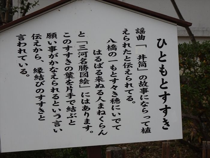 謡曲「筒井筒」の故事にならって植えられたと伝えられてる。