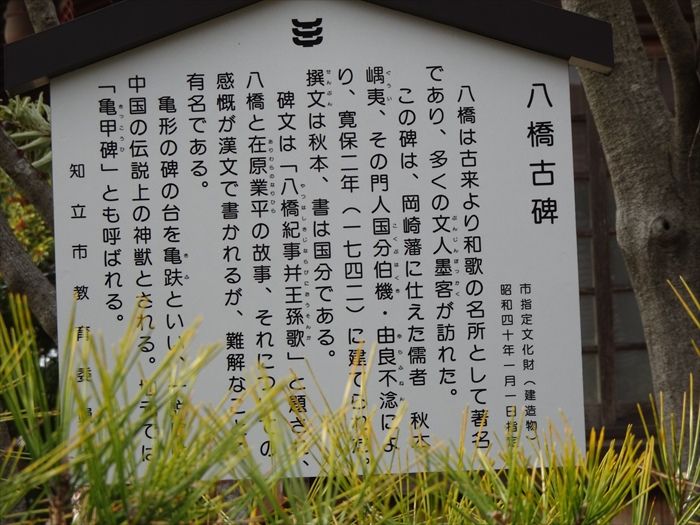 碑文は「八橋紀事弄王孫歌」と題され、八橋と業平の故事、それについての感慨が漢文で