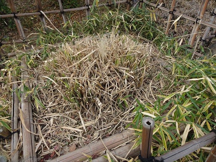 芭蕉句碑の後にあったが、根本から刈り込まれていた。