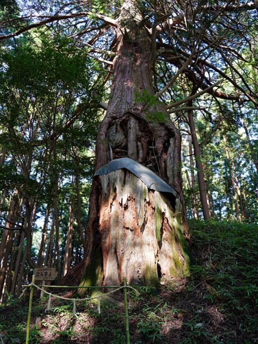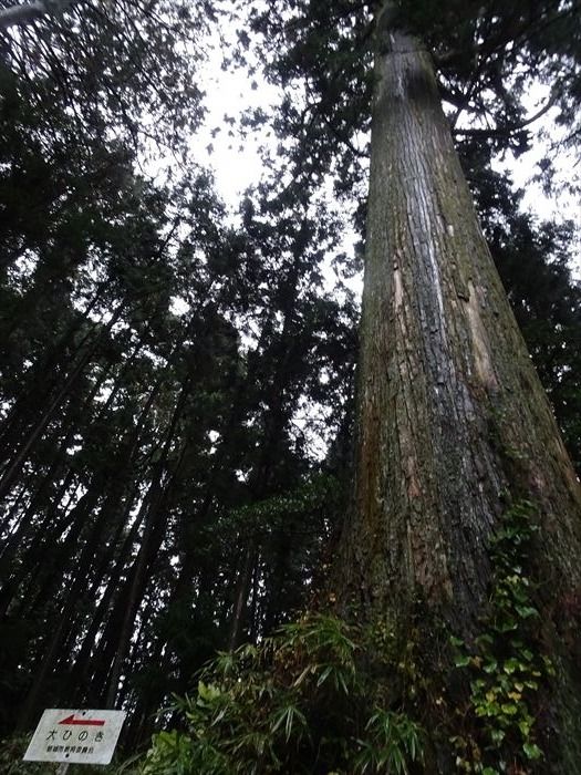 上とのこと。樹齢が600年以上のとても古いヒノキで、幹周5.85m、樹高29mと。