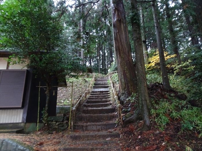 白鳥神社脇の階段の光景。古宮城が現役時代には、西側の虎口を経由する以外ほかにはなかった