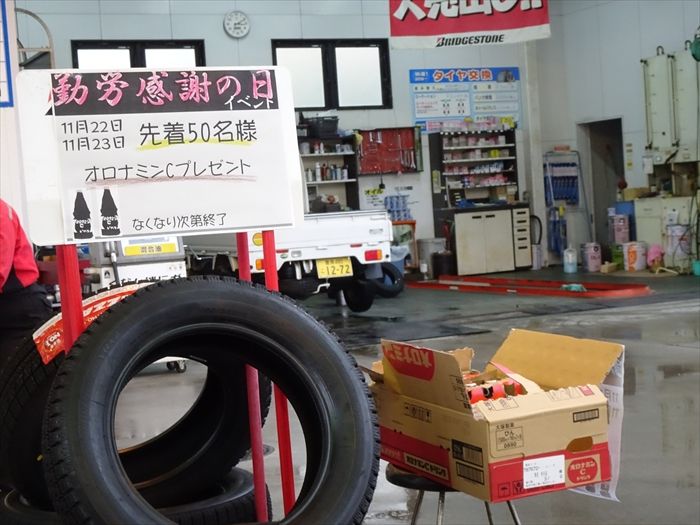 途中ガソリンスタンドで給油。この日は11月22日でオロナミンⅭをもらえる「勤労感謝の日」。」何故かそして本来は車1台につき1本のところであったが、2人で『オロナミンC』を3本頂いたのであった。