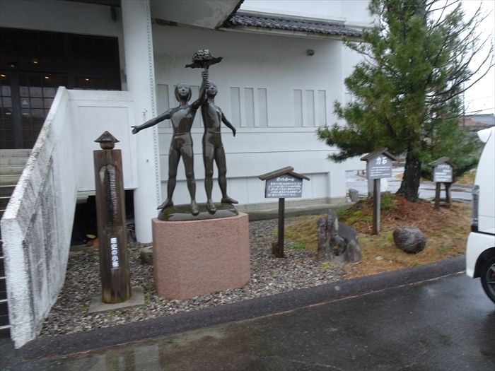 階段横には少女像『ふれあい』と『ポットホール』と『力石』