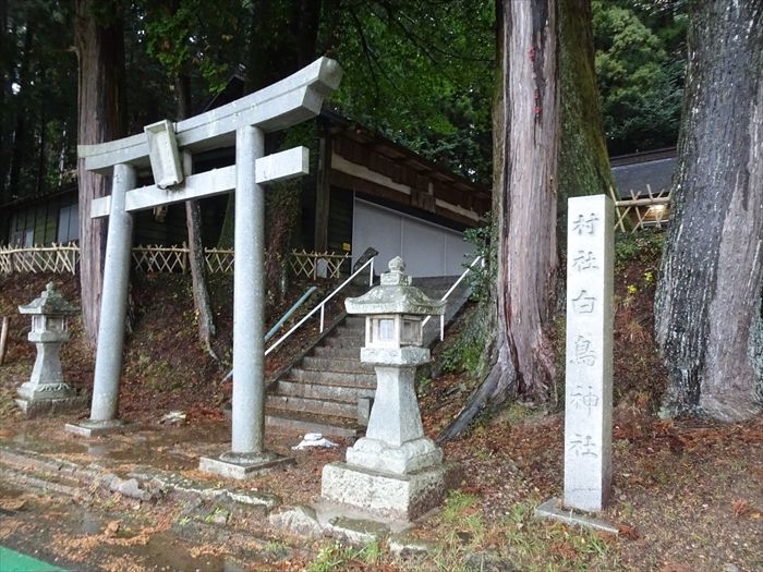 『村社 白鳥神社』社標石碑と石鳥居。