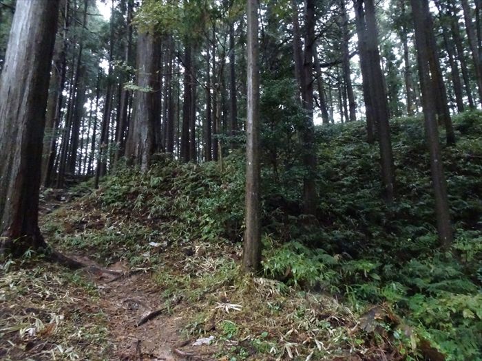東城は頂部において幅約4mの通路で西城とつながり、約3.8aの本曲輪に並んで二の曲輪があり