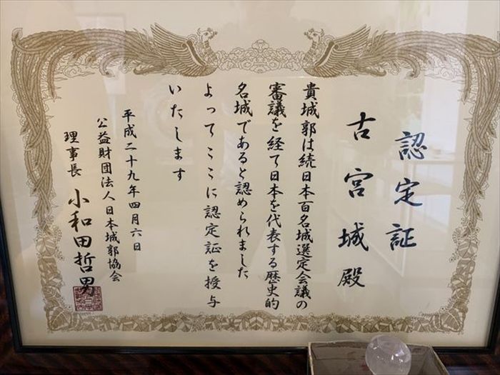 『続日本百名城認定書 古宮城』