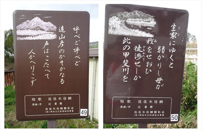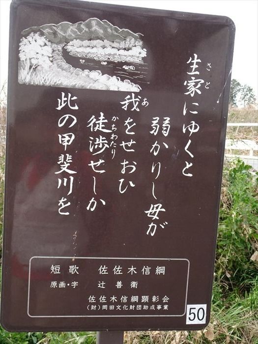 生家にゆくと 弱かりし母が 我をせおひ 徒渉せしか 此の甲 斐