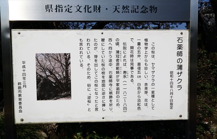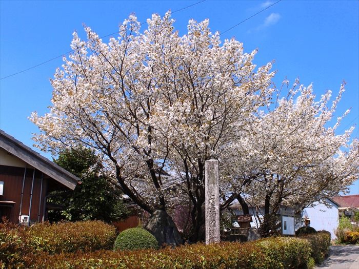 石薬師寺に戦勝を祈り、 鞭にしていた桜の枝を地面に逆さに挿したのが、芽を出して