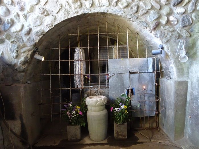 地下の洞内岩盤に浮き彫りの明暦2年造立釈迦如来像が刻まれていた。