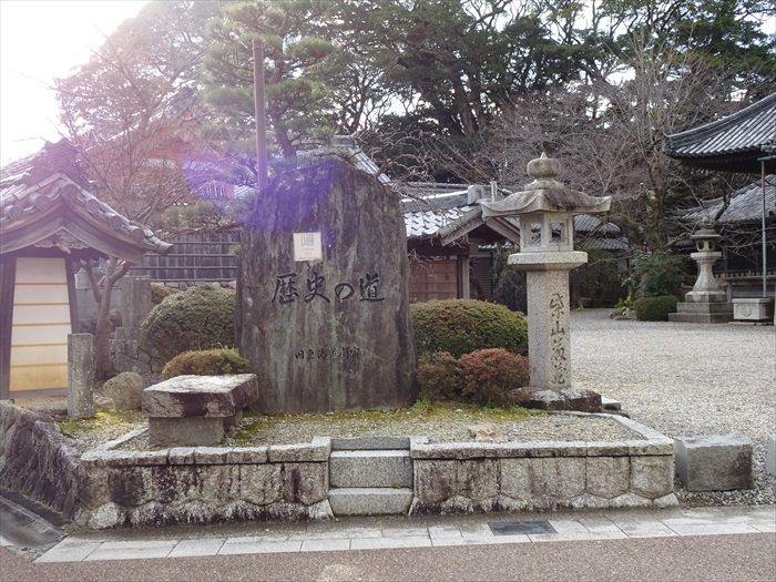 三叉路に建つ文久2年(1862)の『常夜燈』と『歴史の道』碑。